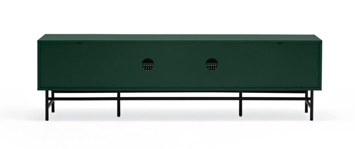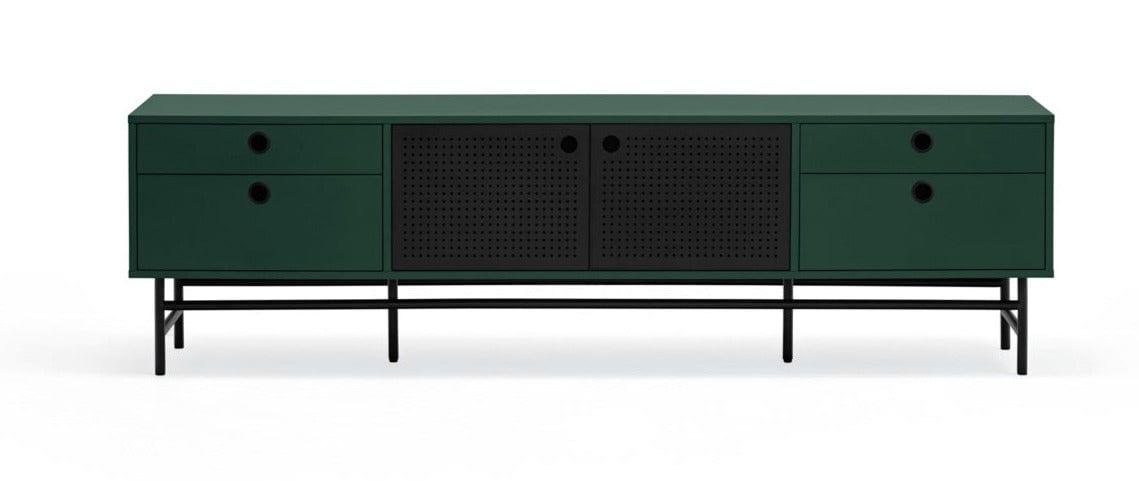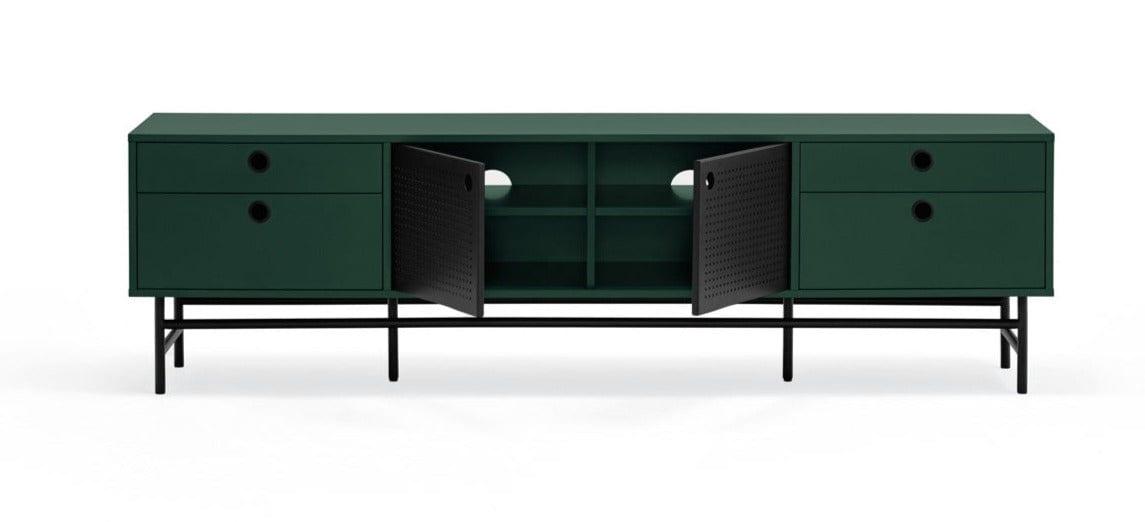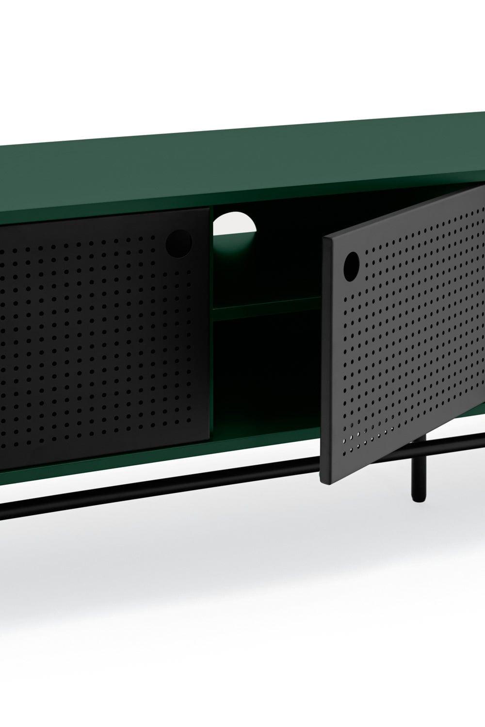 Donkergroene TV-kast Punto is een ontwerp van het Spaanse merk Teulat dat klassiekers verbindt met een unieke moderniteit. Het gebruik van materialen zoals staal heeft ervoor gezorgd dat de TV-kast Punto een uitzonderlijke stijl heeft gekregen in een loftachtige sfeer.