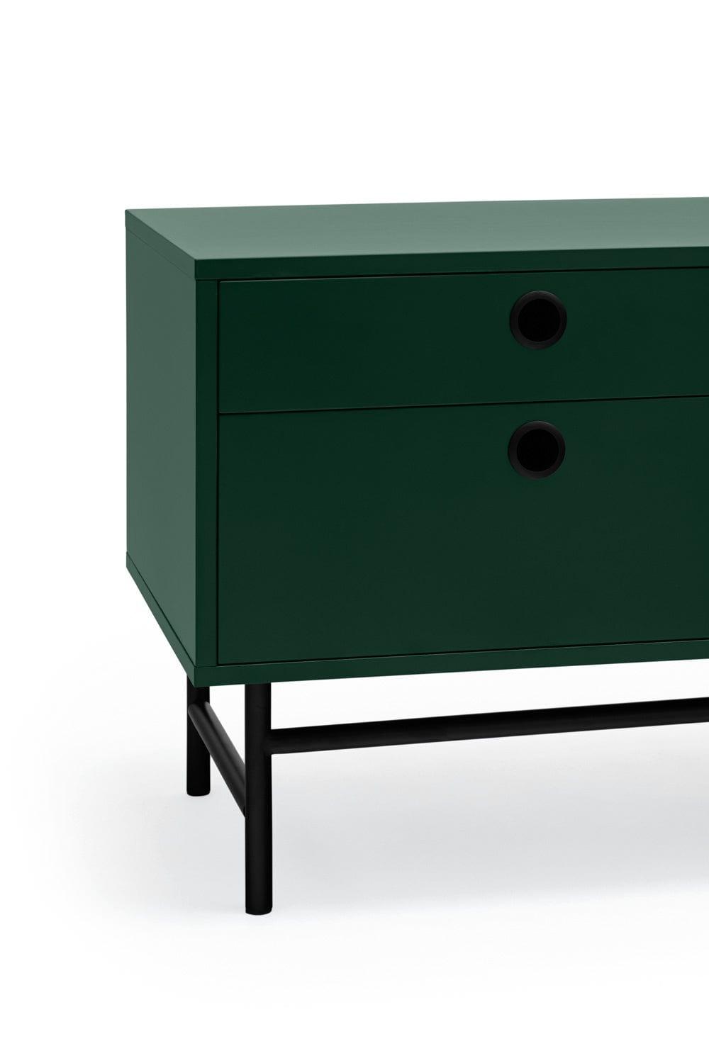 Voor de productie van de Punto-collectie zijn uitsluitend materialen van hoge kwaliteit gebruikt — hierdoor kunt u er zeker van zijn dat het meubel dat u aanschaft jarenlang in uw huis zal blijven. Bovendien geeft de donkergroene afwerking de TV-kast een originaliteit en een moeiteloze elegantie.
