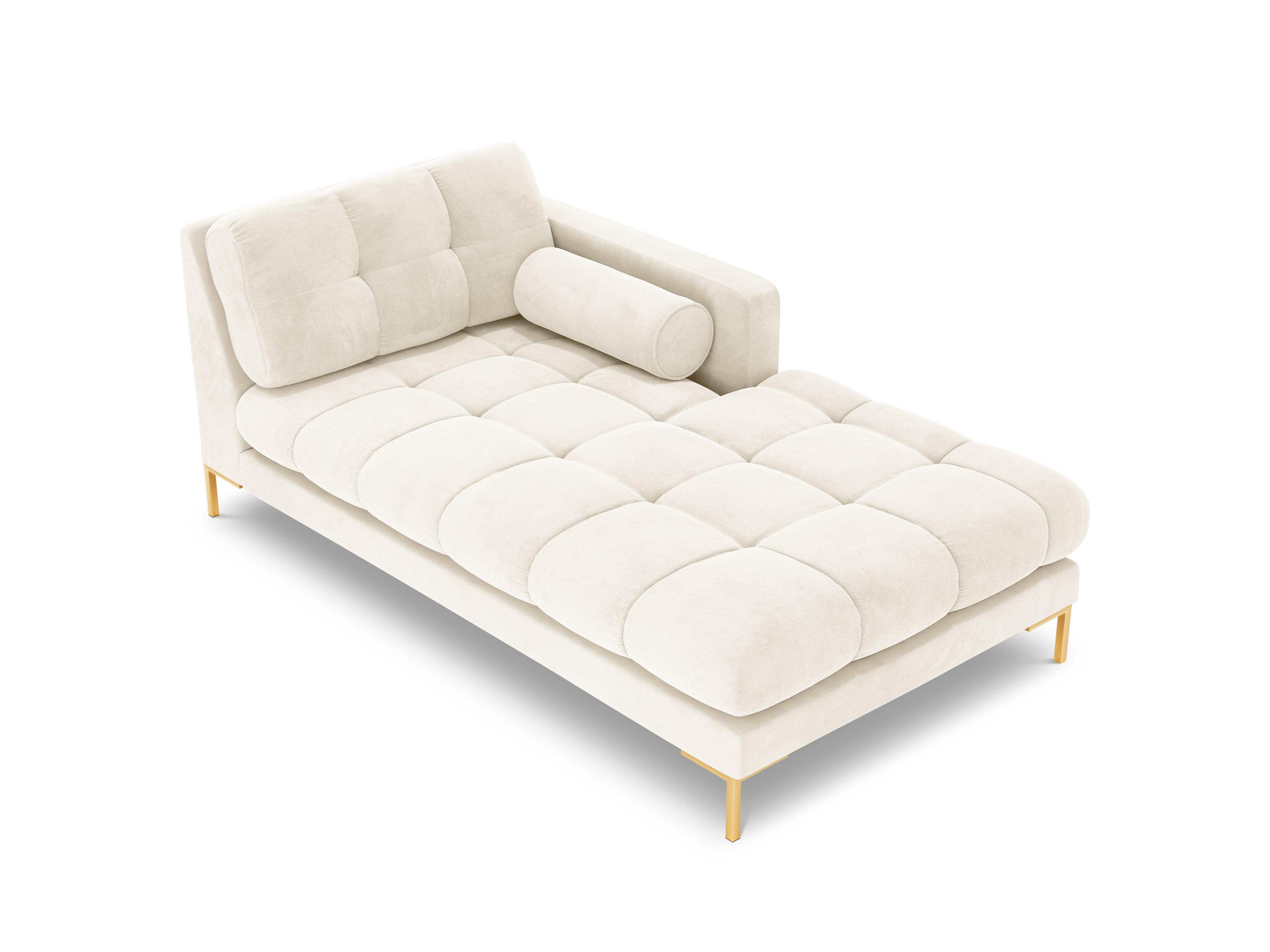 Szezlong aksamitny prawostronny BALI jasnobeżowy ze złotą podstawą