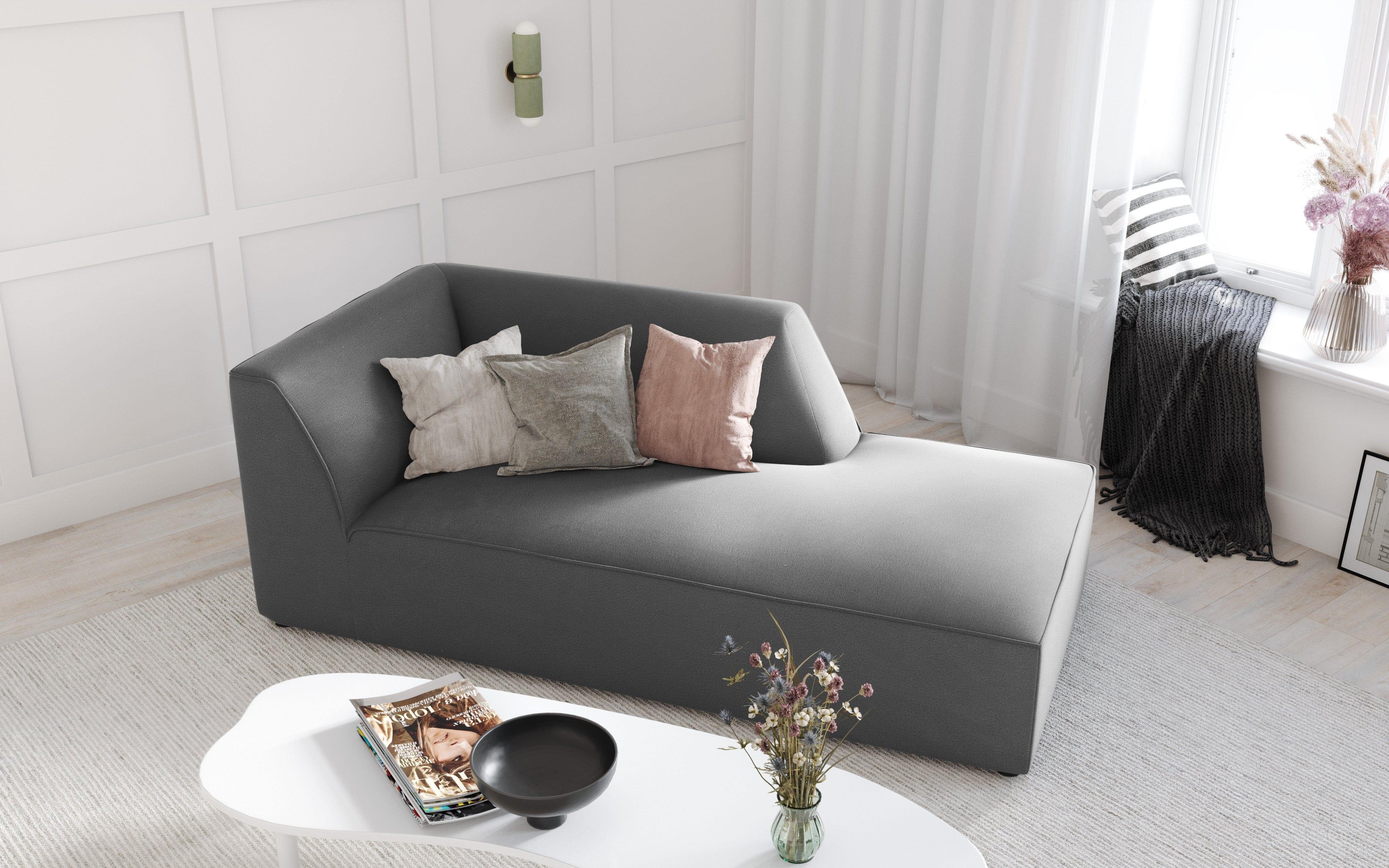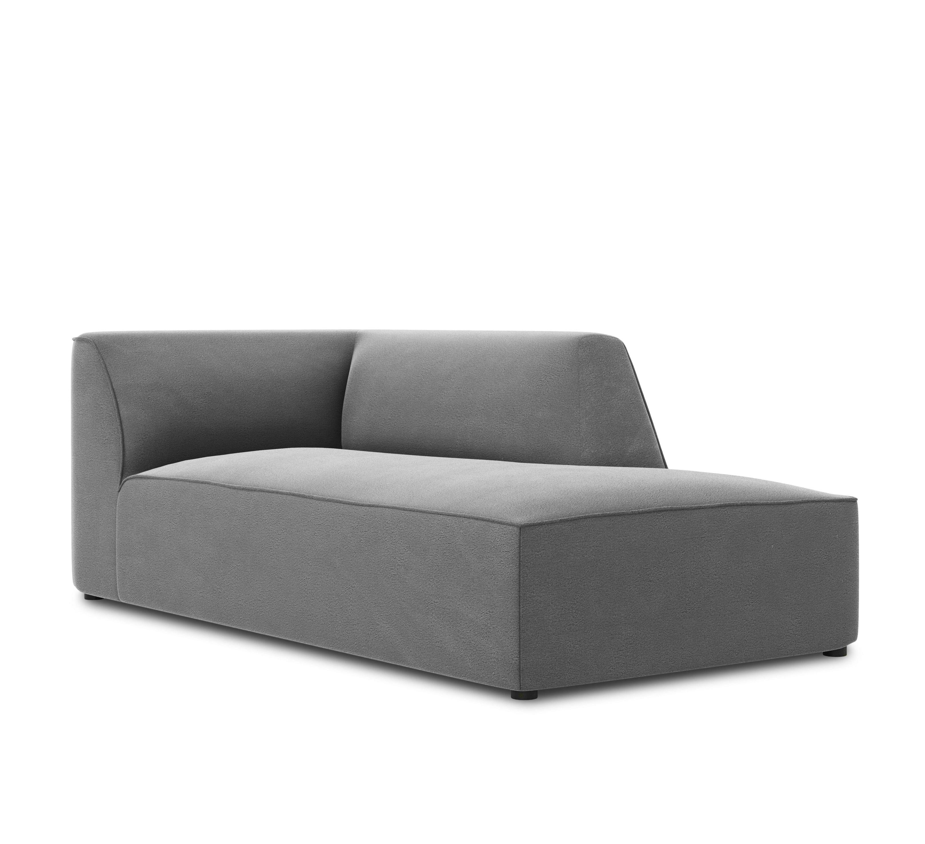 Grijze rechtszijdige fluwelen chaise longue RUBY