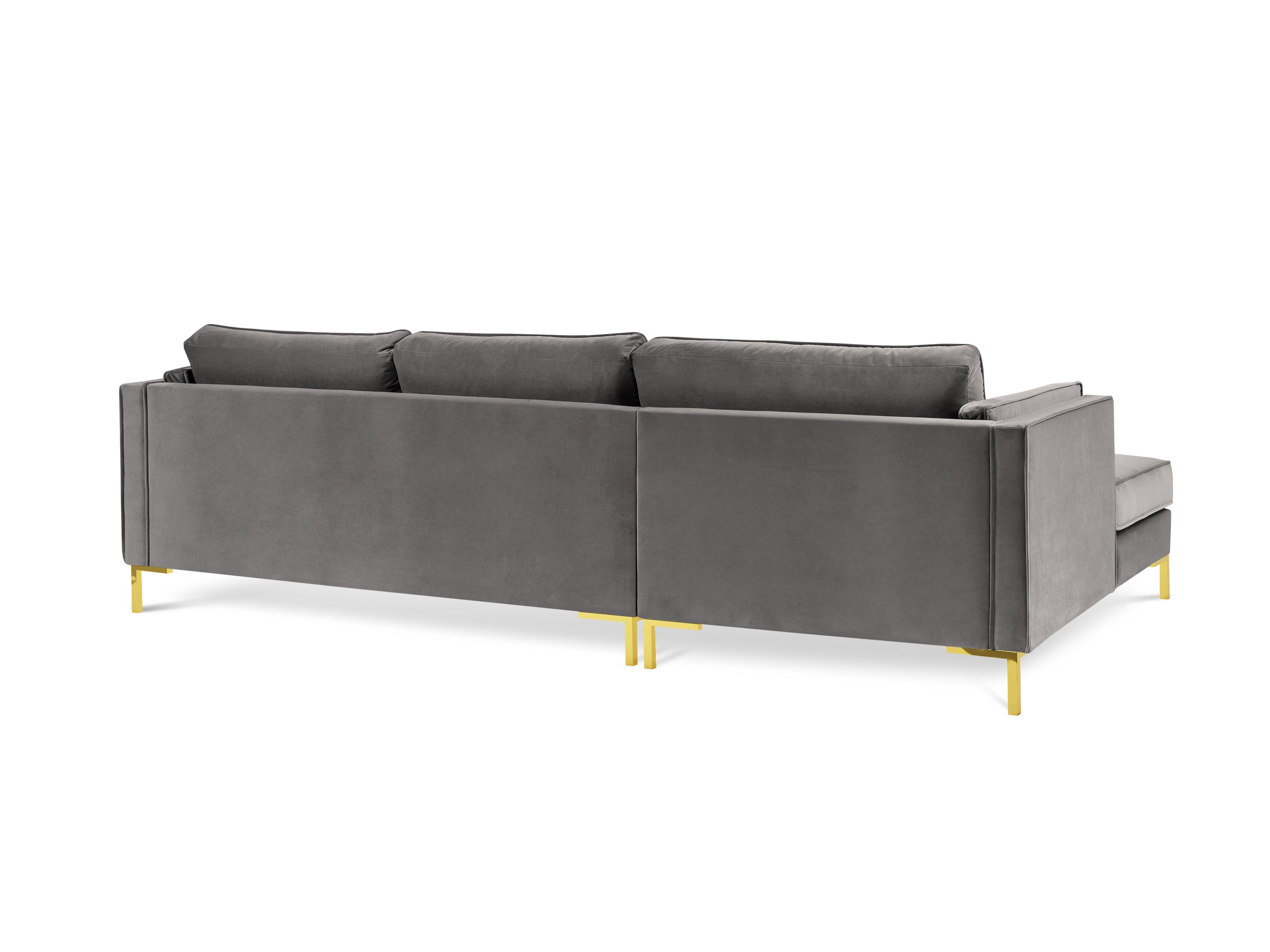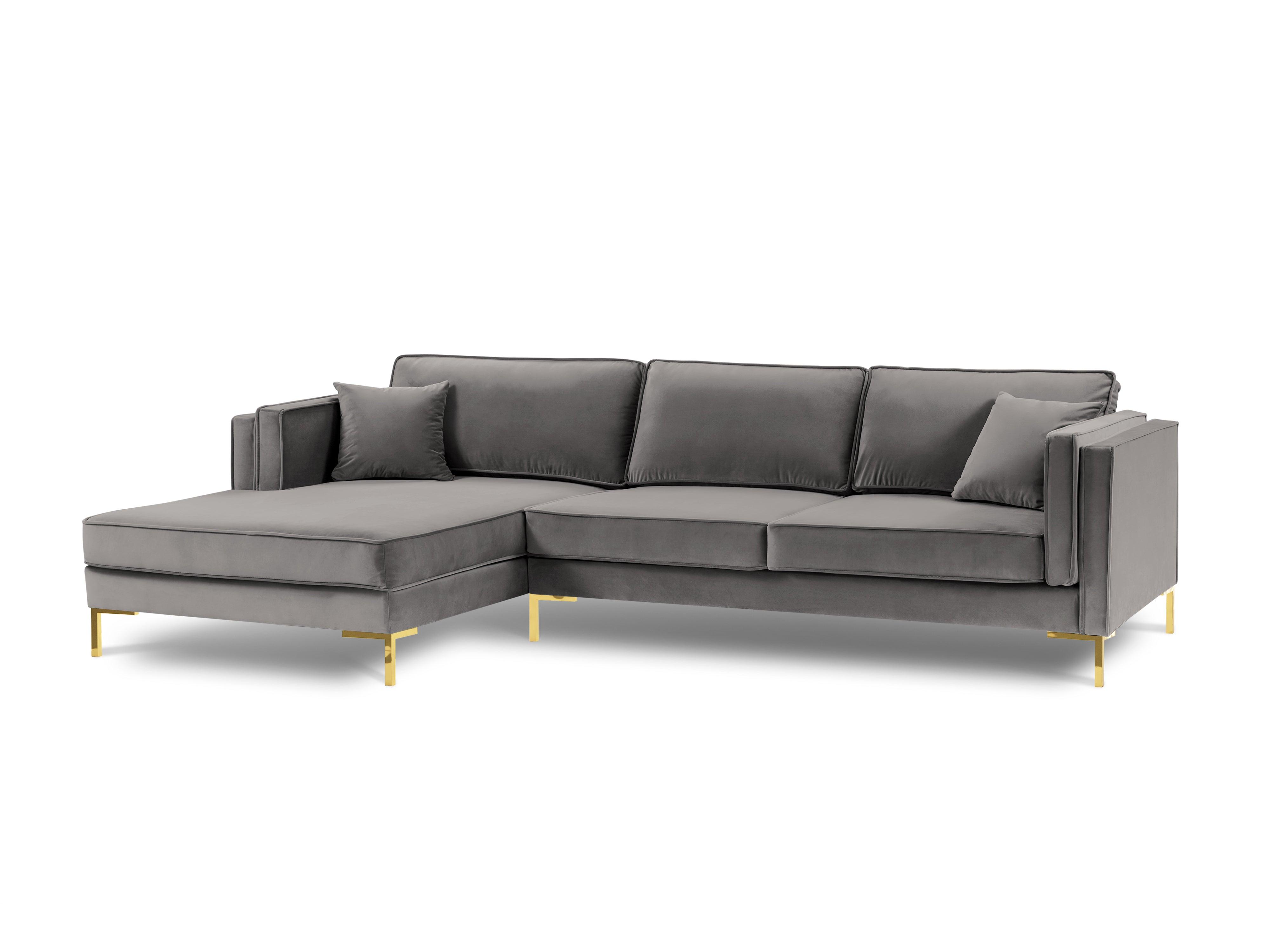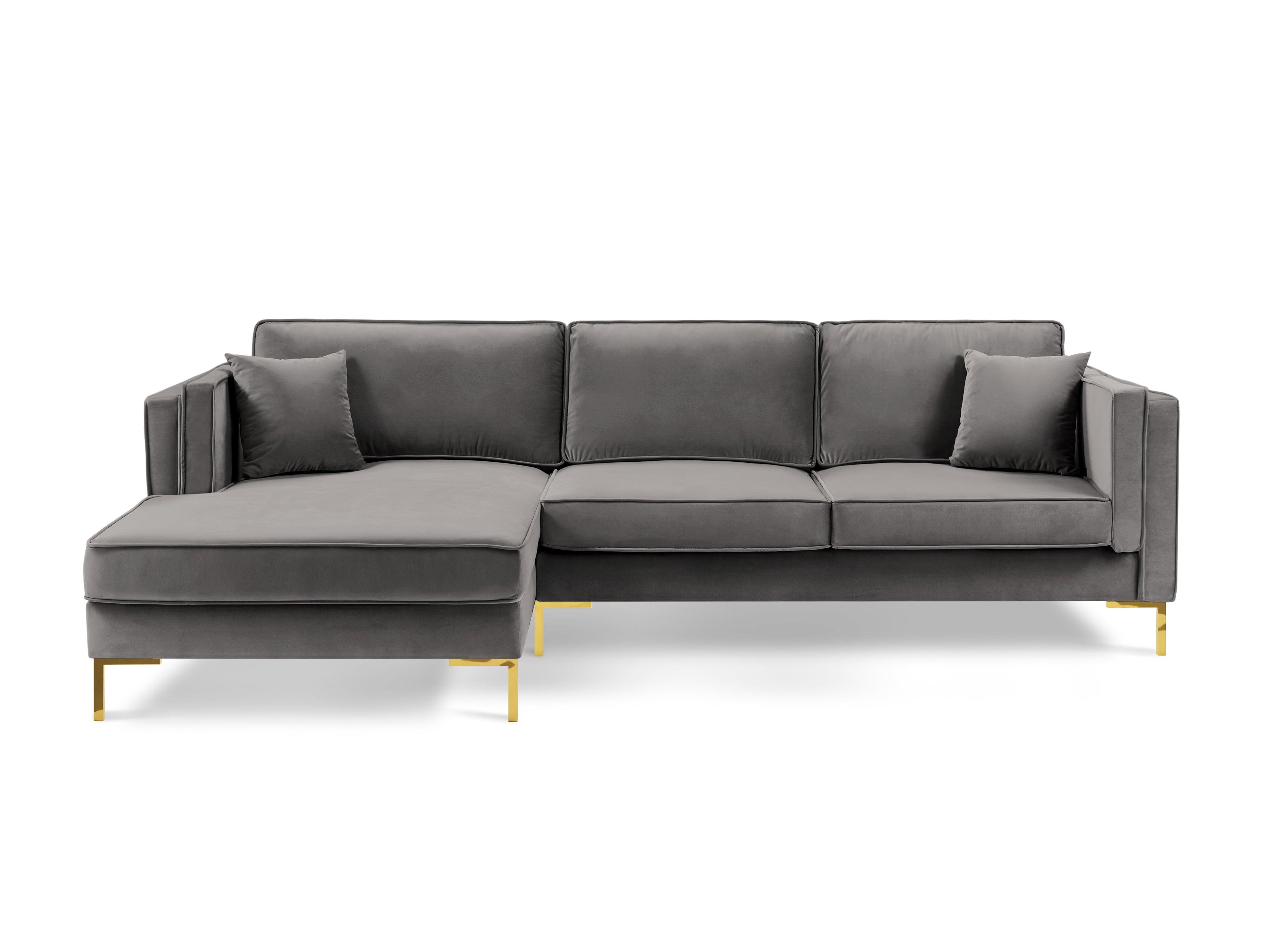 Fluwelen hoekbank LUIS links grijs met gouden basis