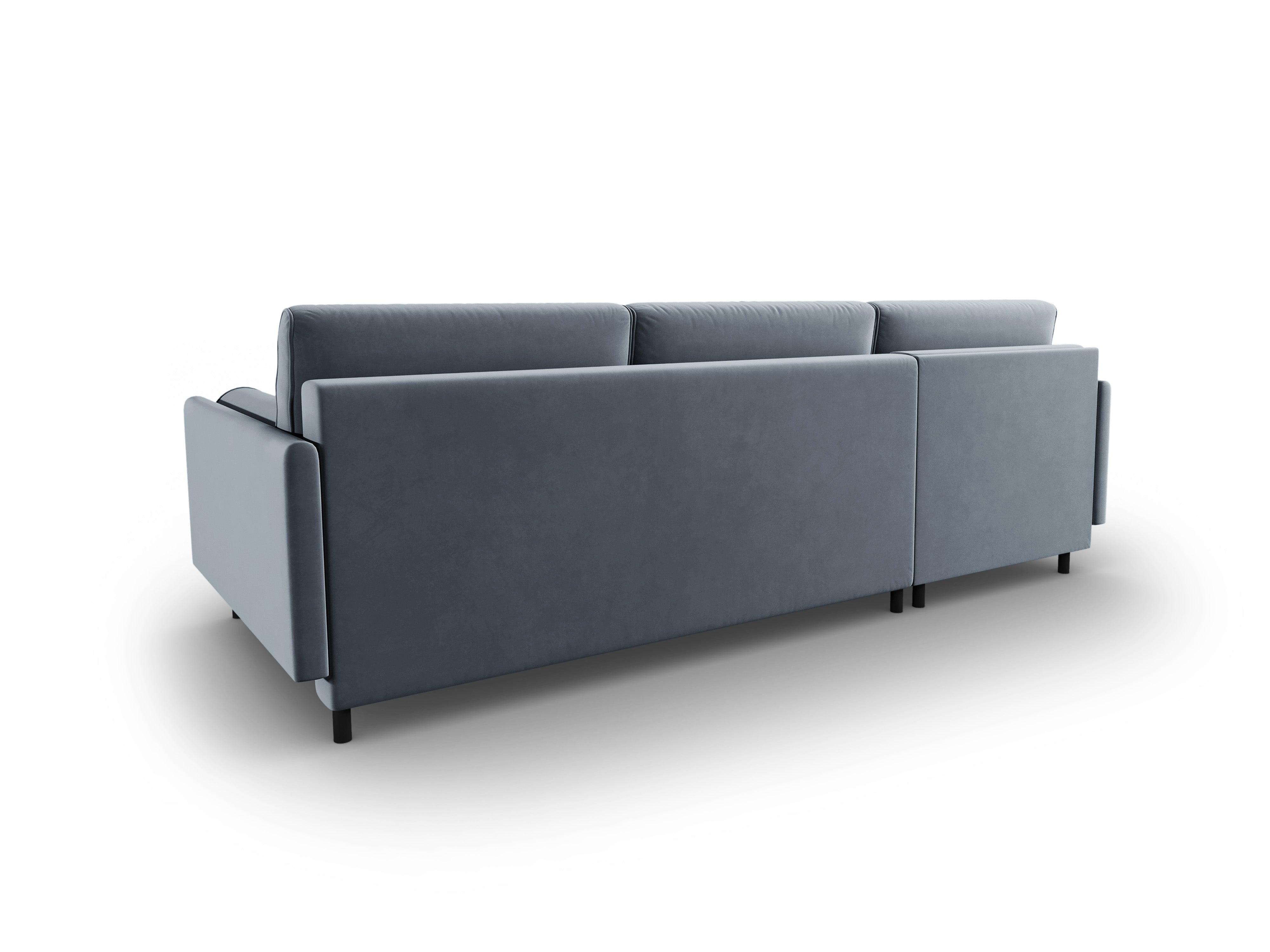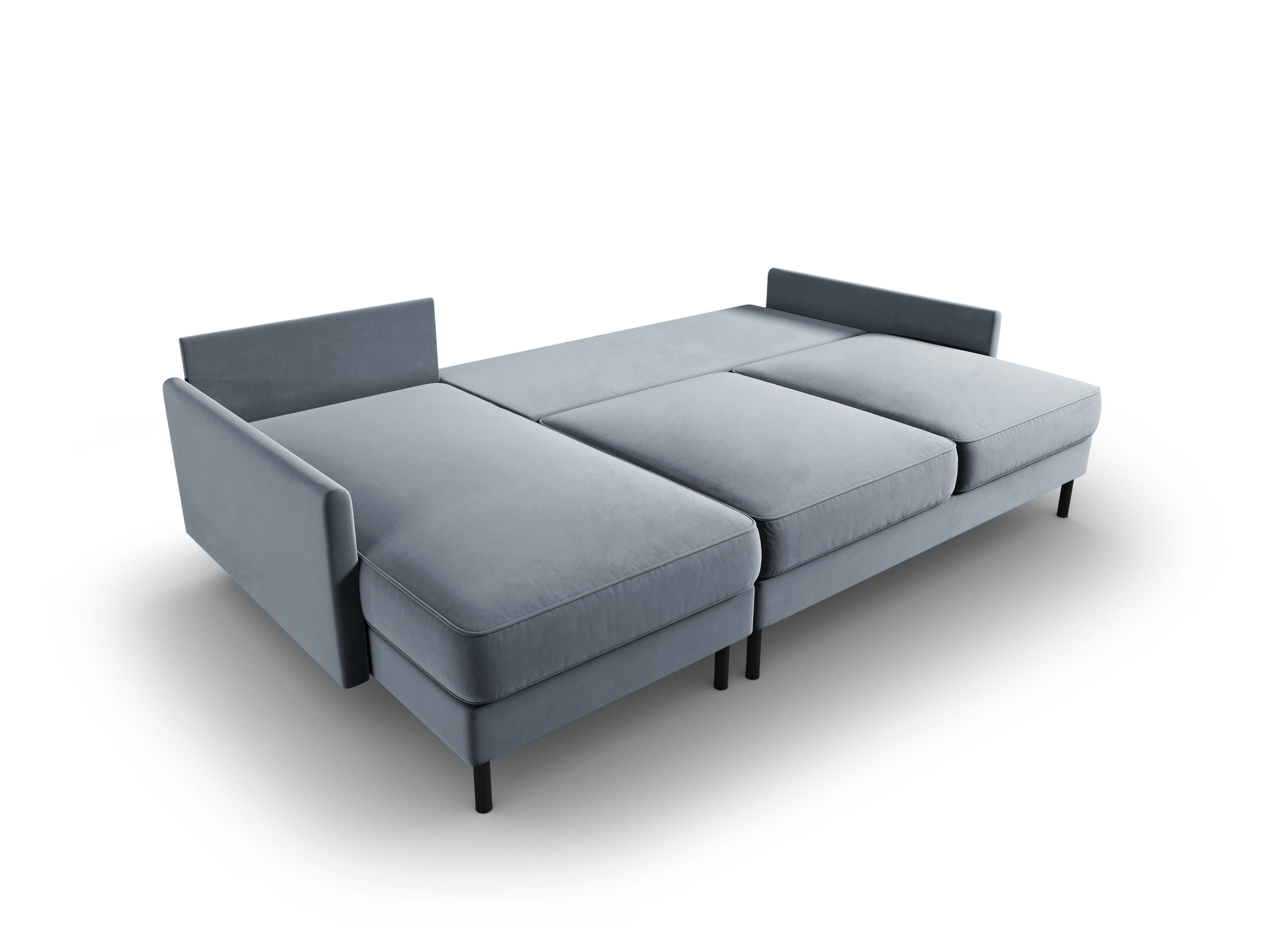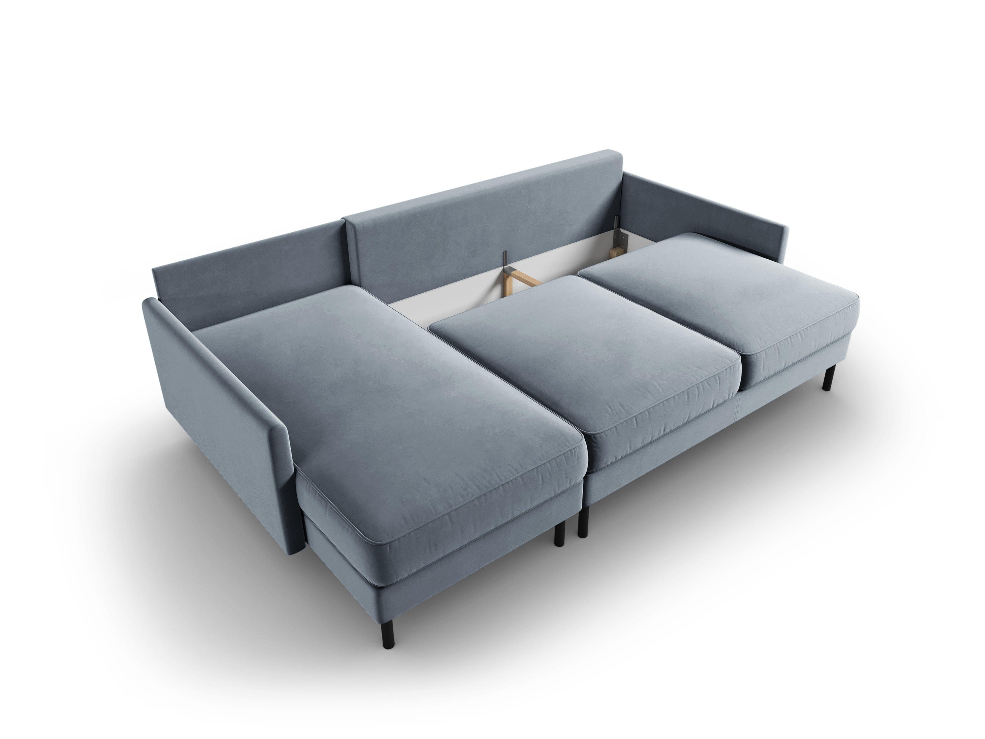 Velours hoekbank links met slaapfunctie SCOTT lichtblauw