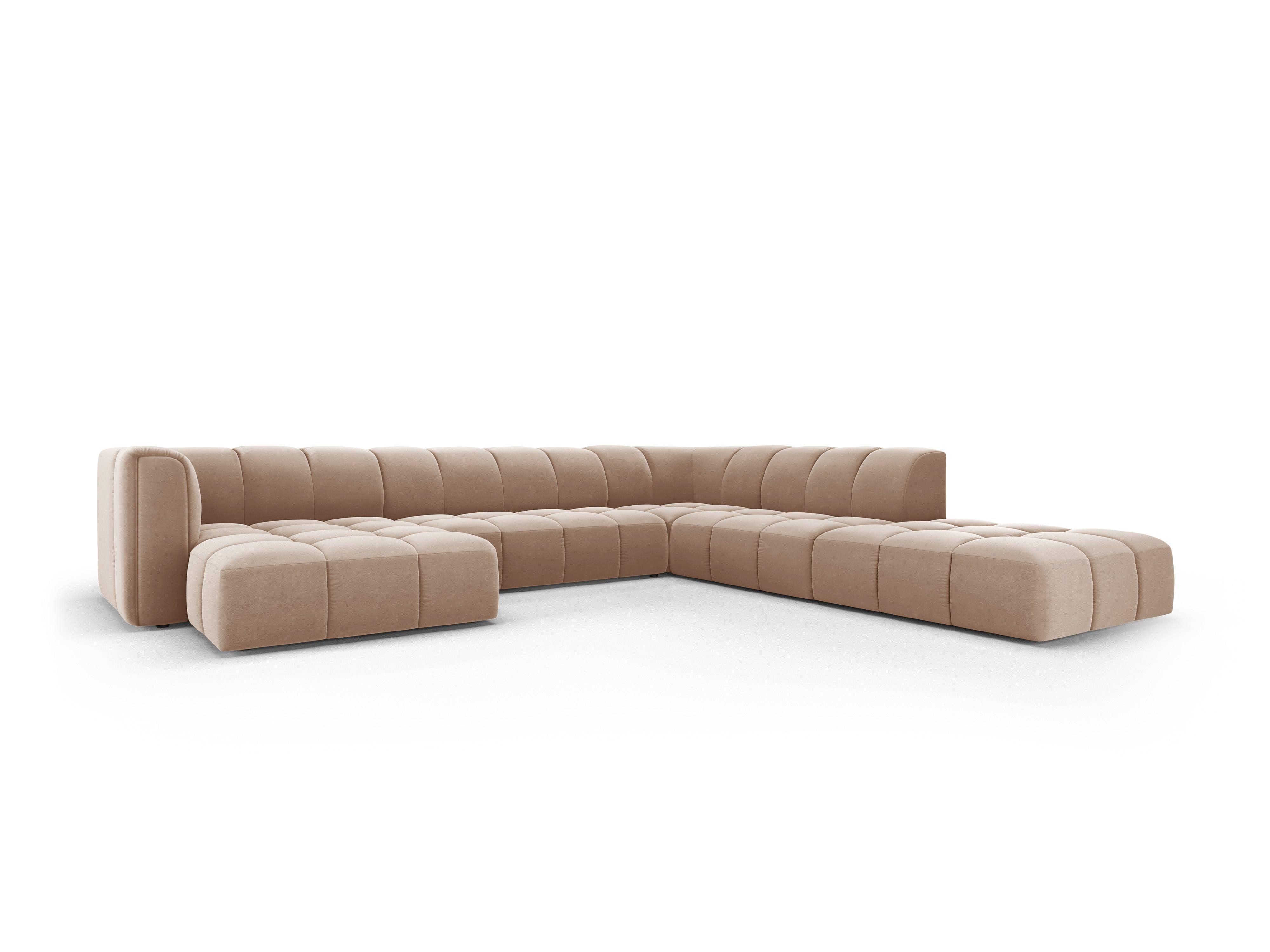 Panoramische fluwelen hoekbank rechts FRANCESCA beige