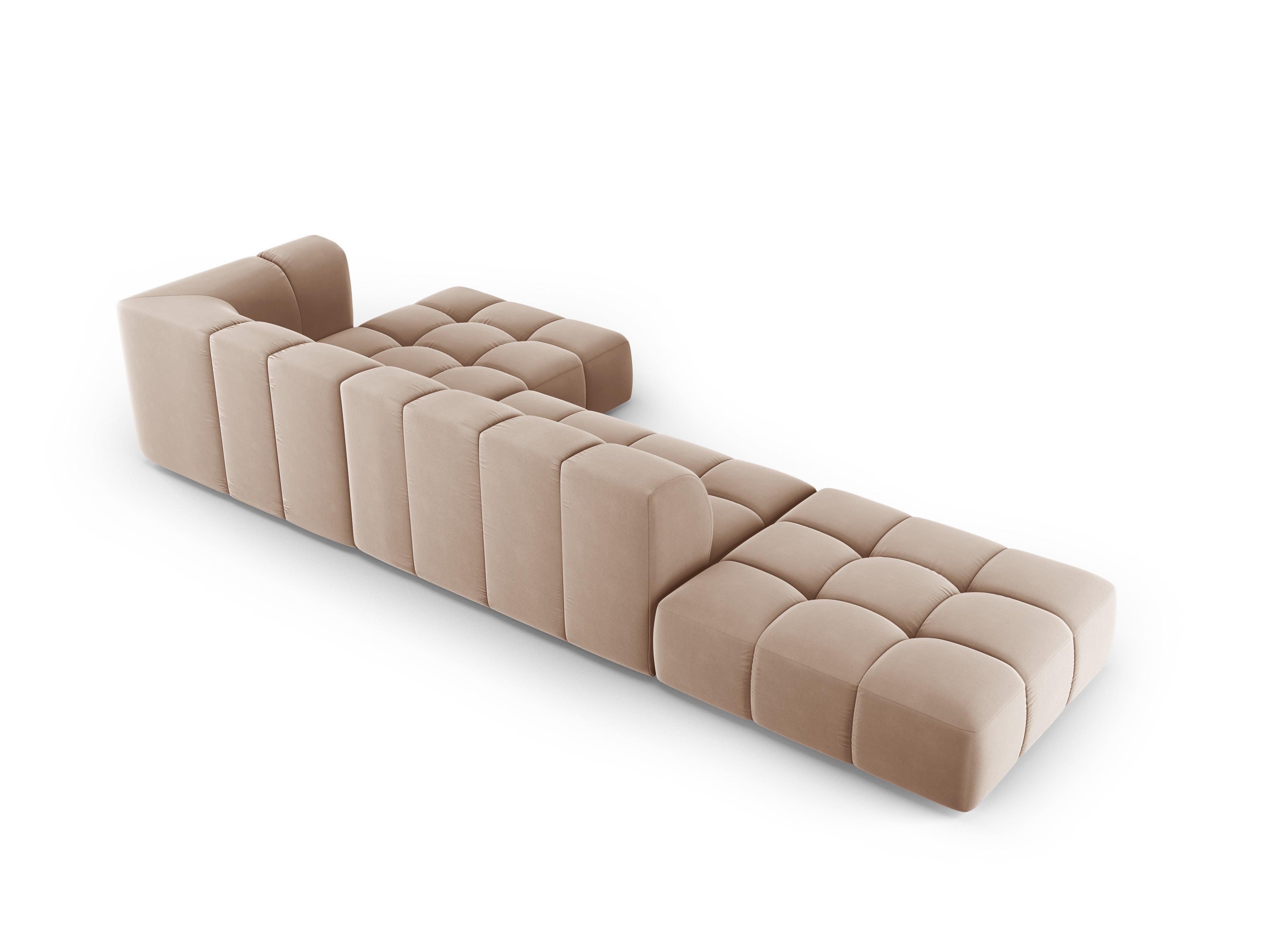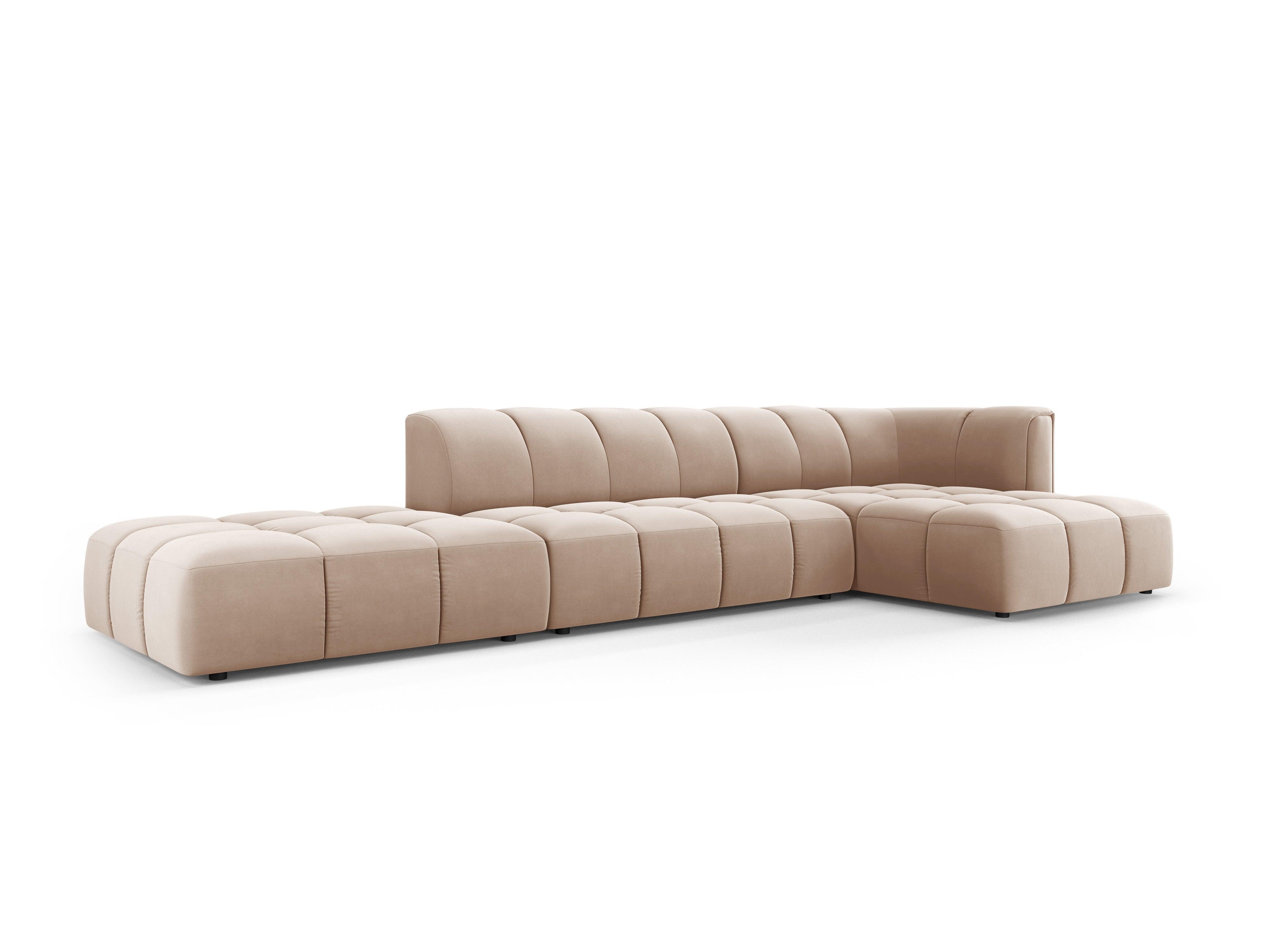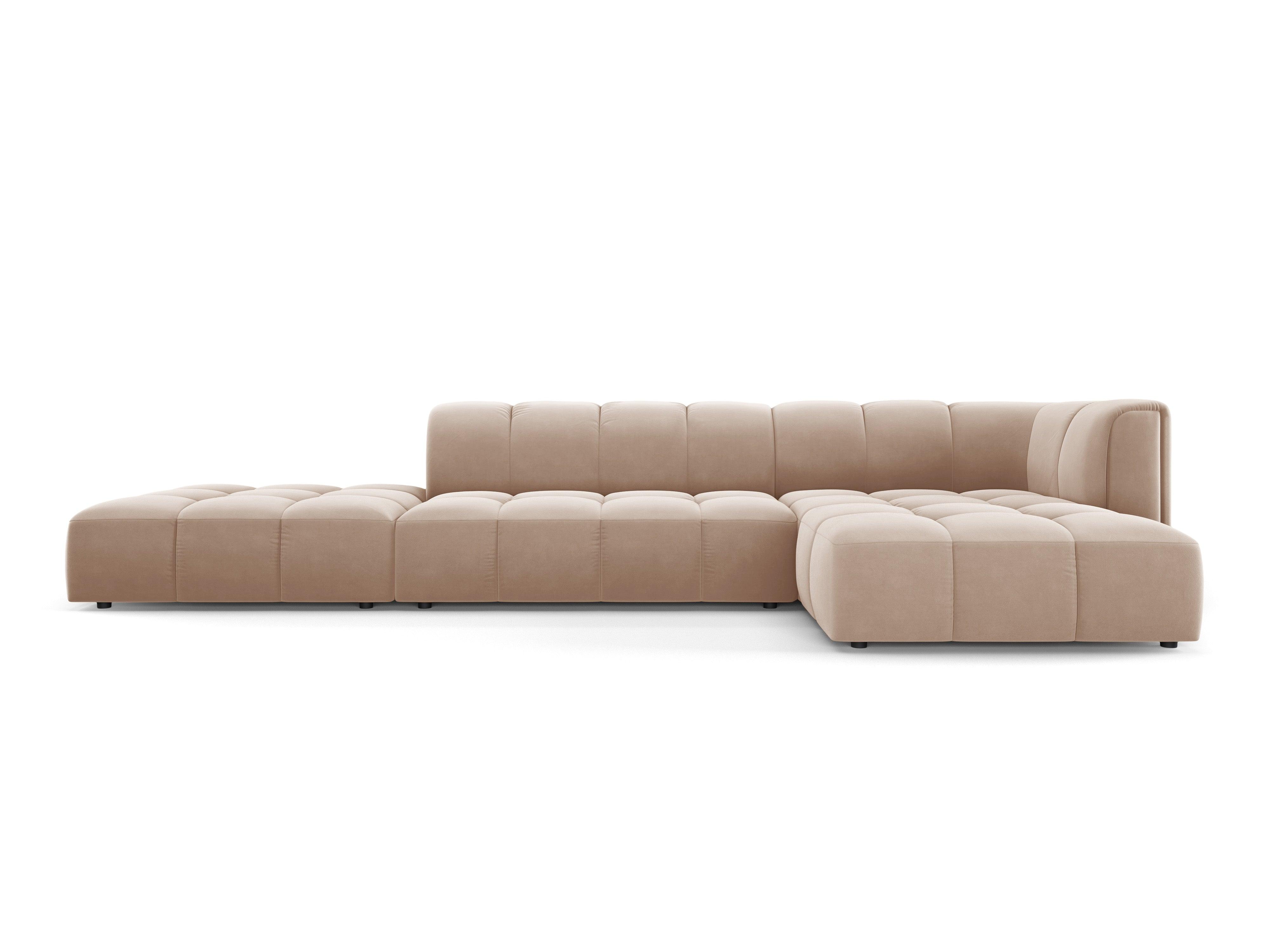 Beige open rechthoekige fluwelen hoekbank voor 5 personen rechts FRANCESCA