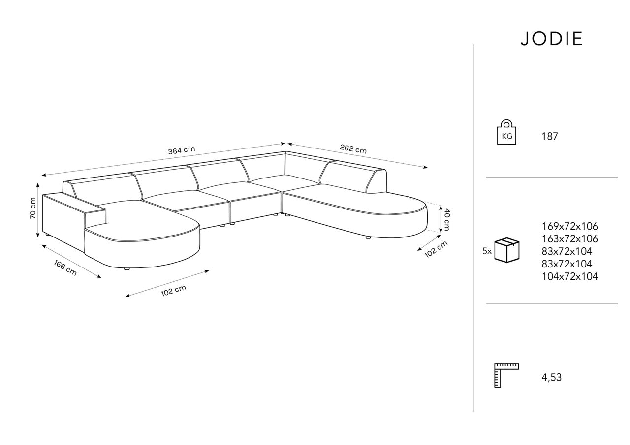 De panoramabank Jodie is zeer comfortabel dankzij zijn grote formaat, dat plaats biedt aan zelfs zeven personen. Daarnaast heeft hij zachte, comfortabele rug- en zitkussens die zorgen voor een aangename zitervaring.