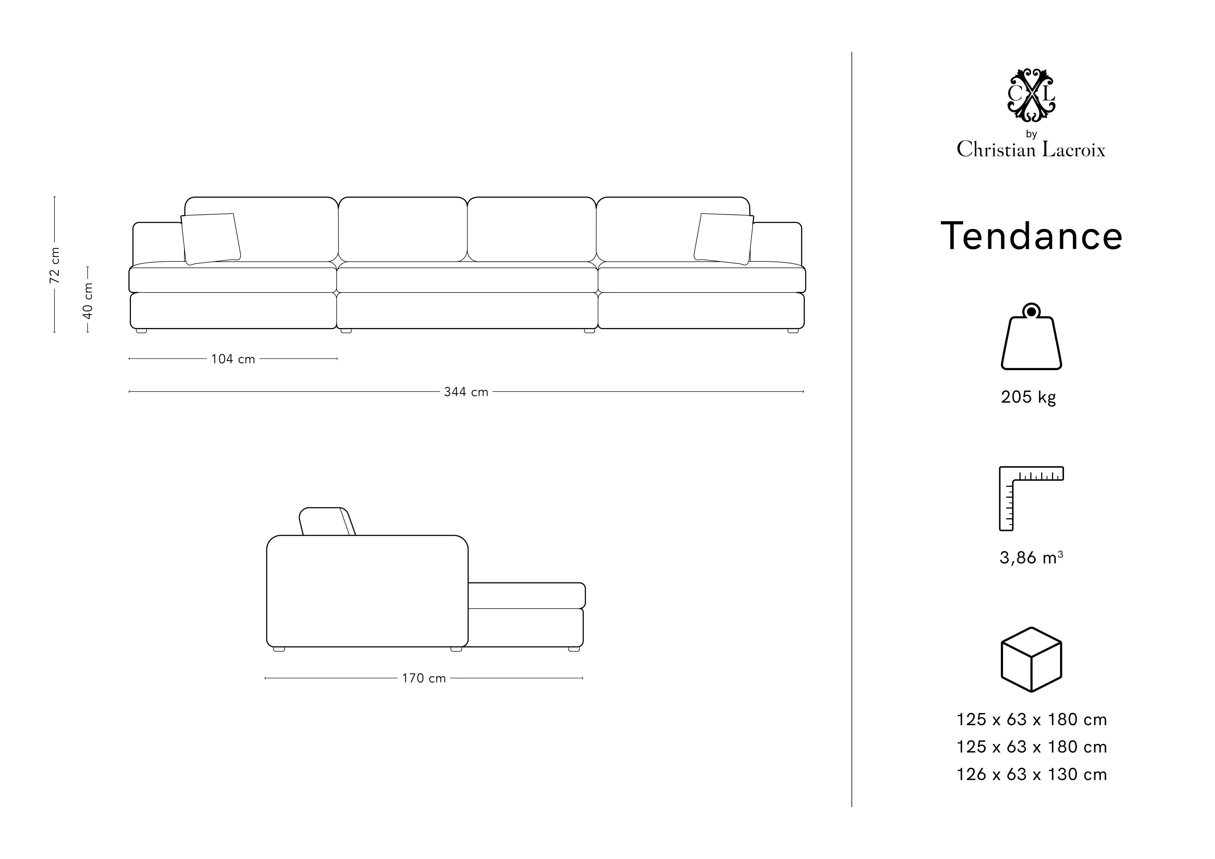 Panohoekbank Tendance, gesigneerd door het Franse modehuis Christian Lacroix, is een prachtige combinatie van tijdloze elegantie en modern design. De geometrische en subtiele vormen van deze hoekbank brengen een vleugje gezelligheid in uw interieur. Het kubistische ontwerp geeft het geheel een unieke uitstraling.