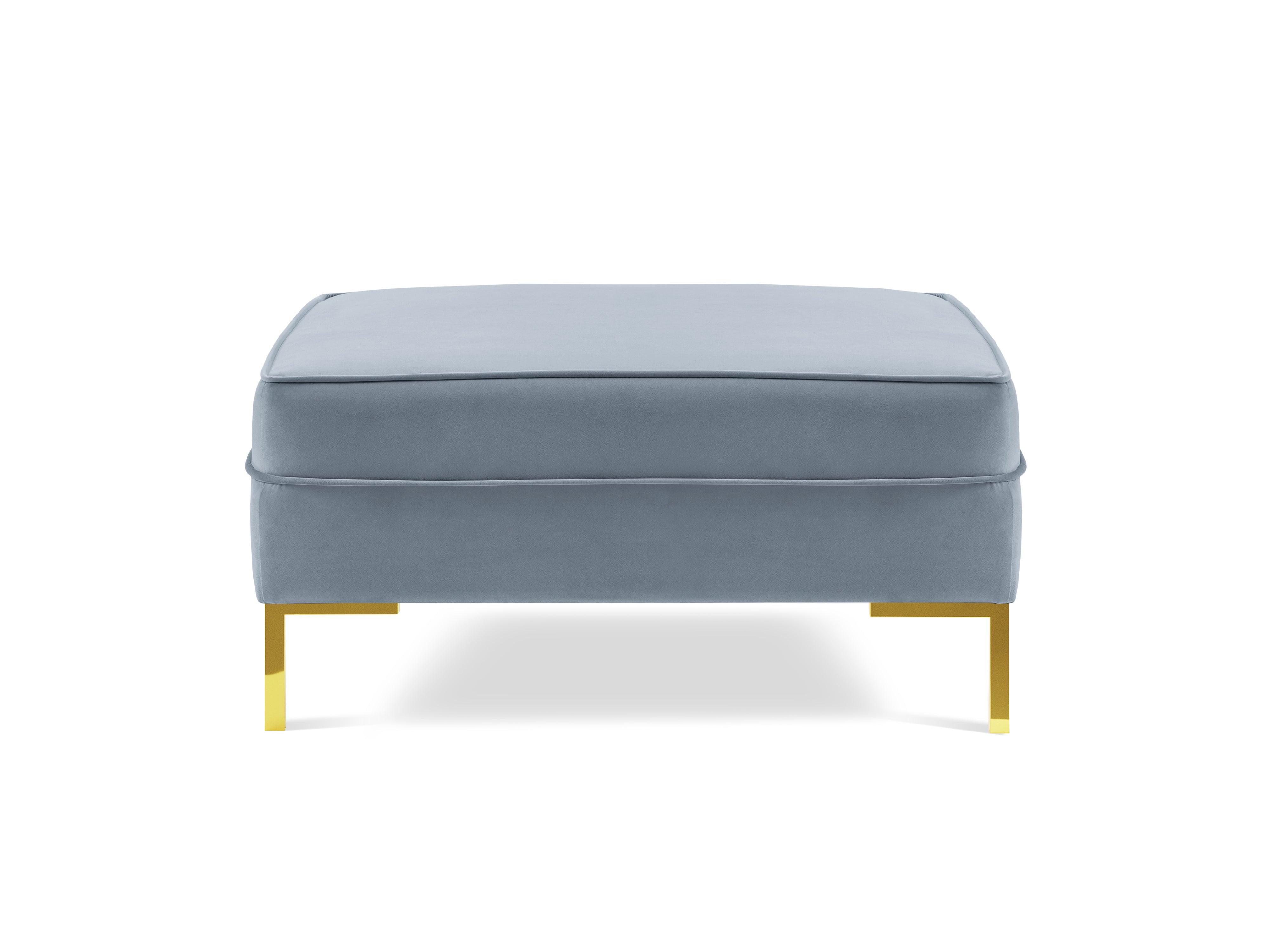 Fluwelen poef LUIS lichtblauw met gouden basis