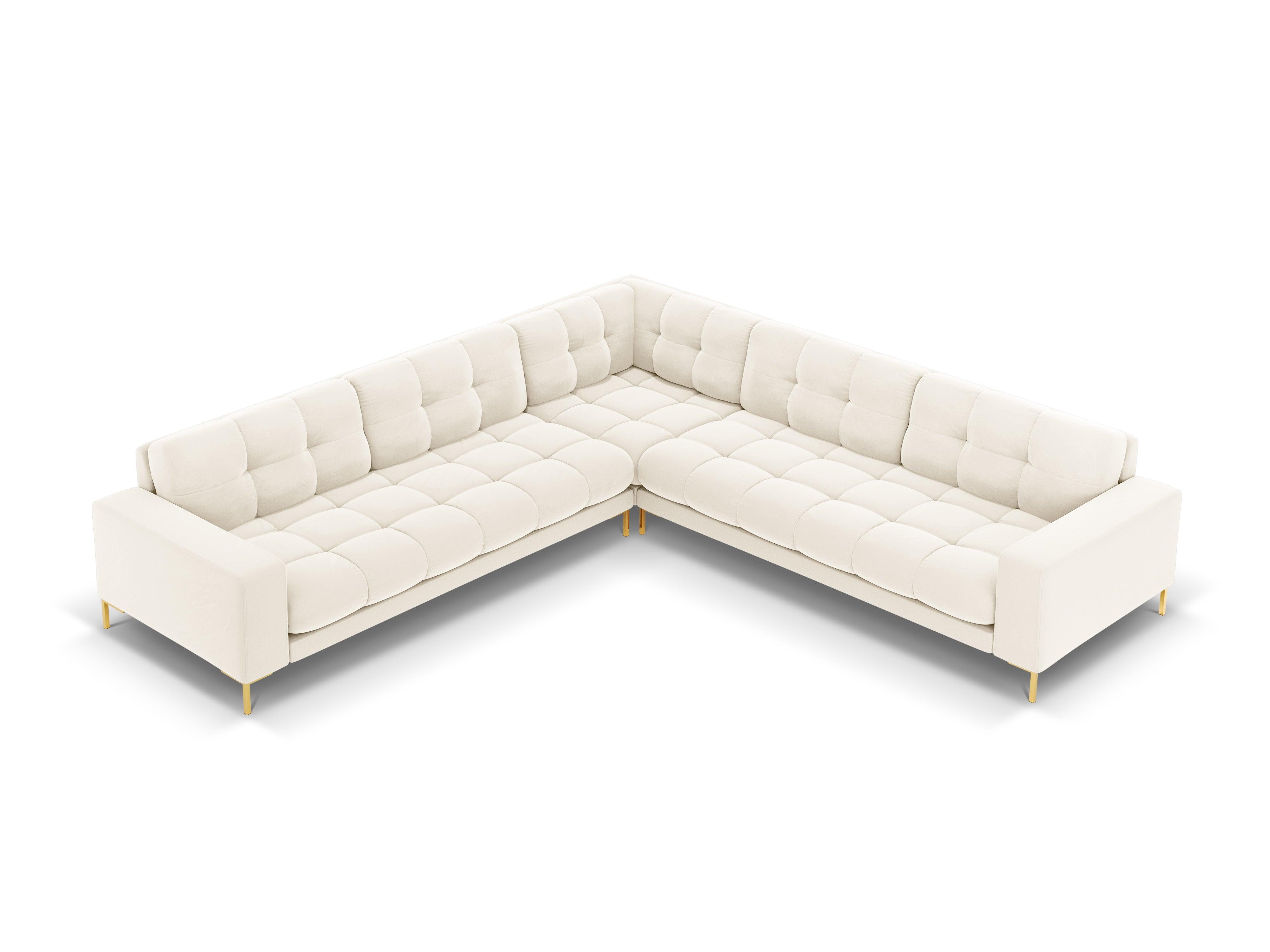 Narożnik aksamitny symetryczny BALI jasnobeżowy ze złotą podstawą