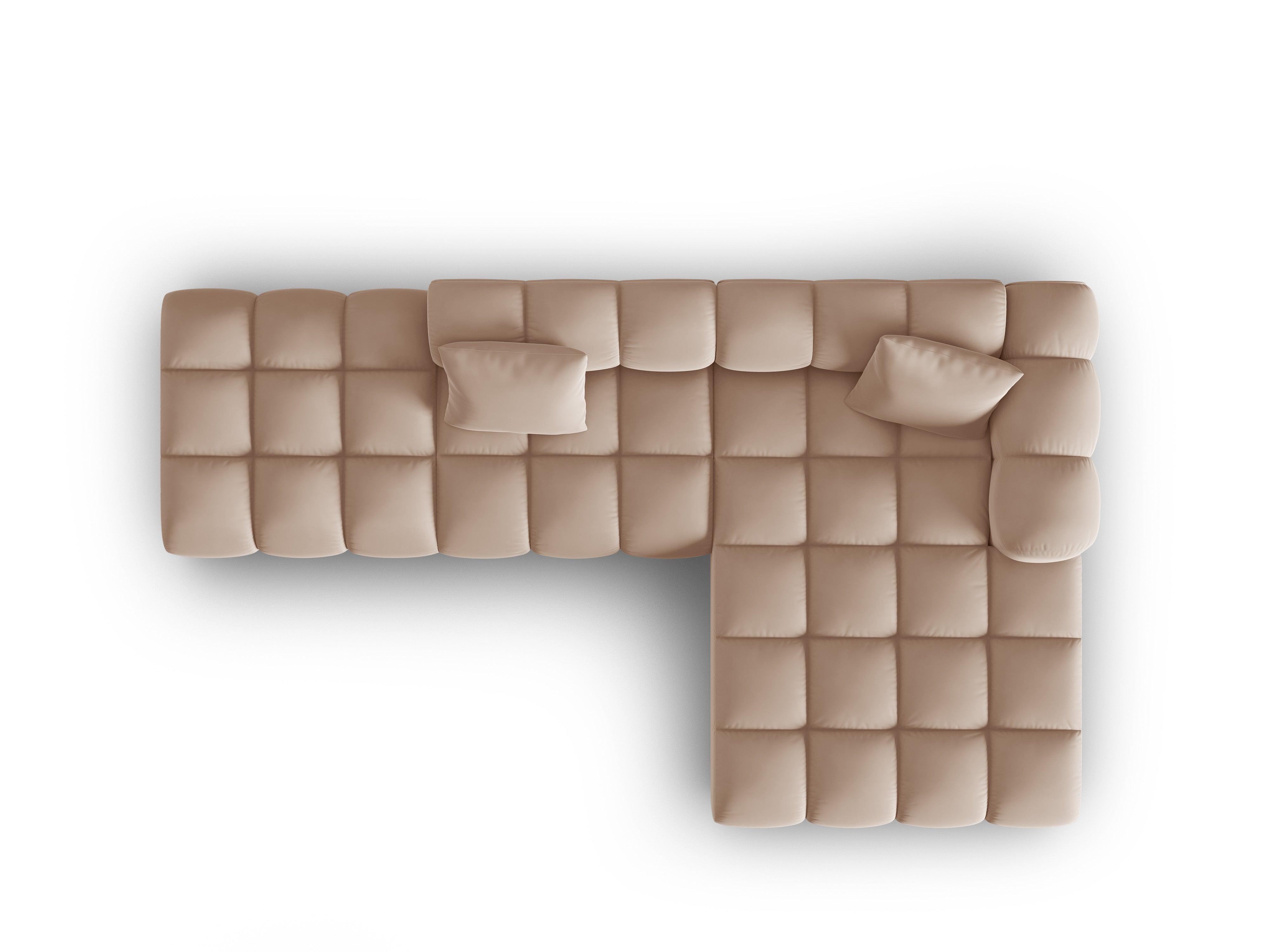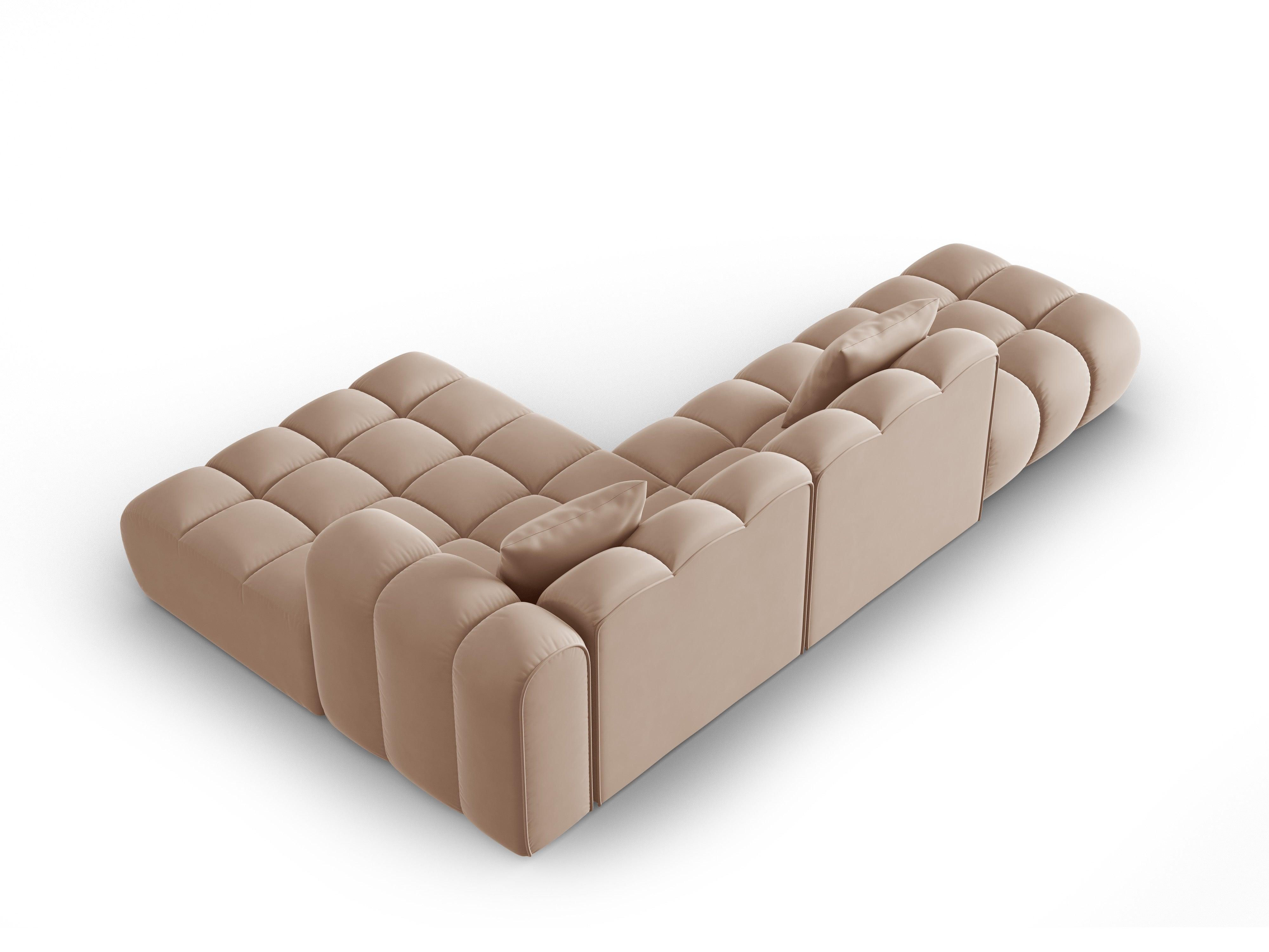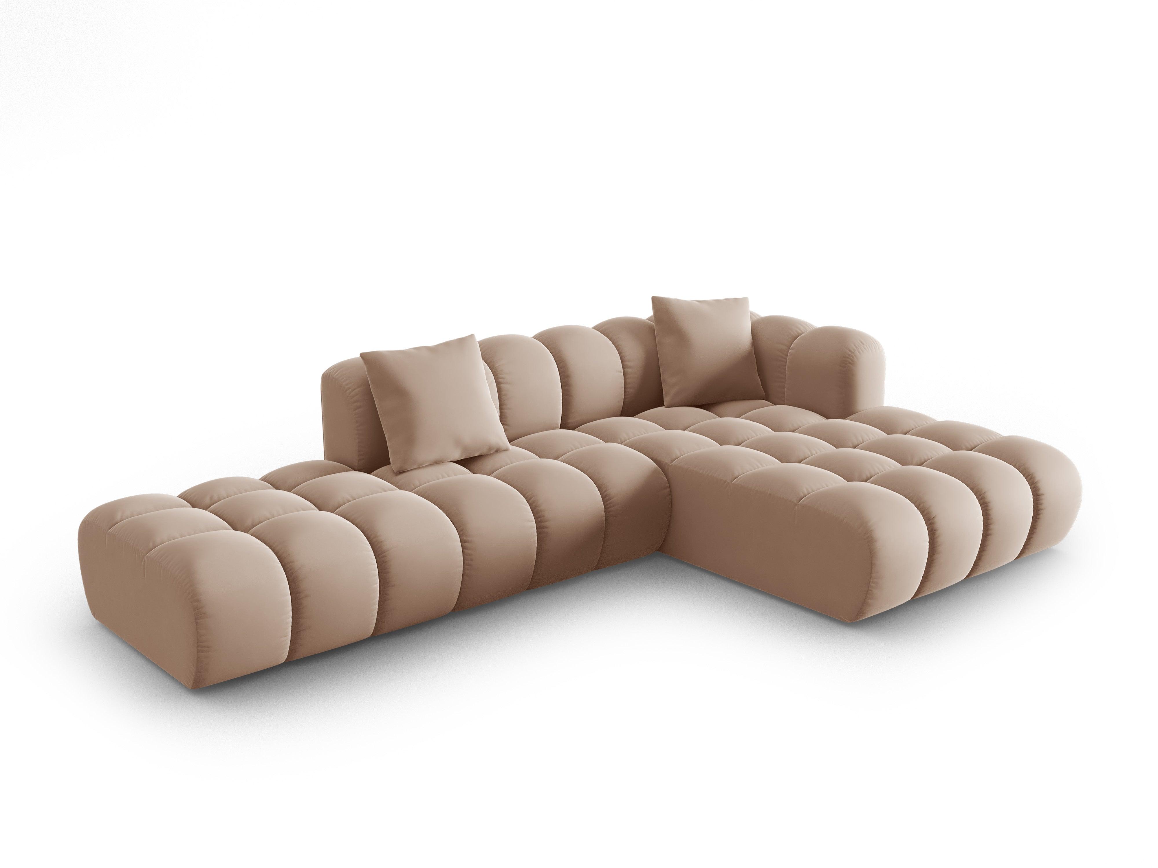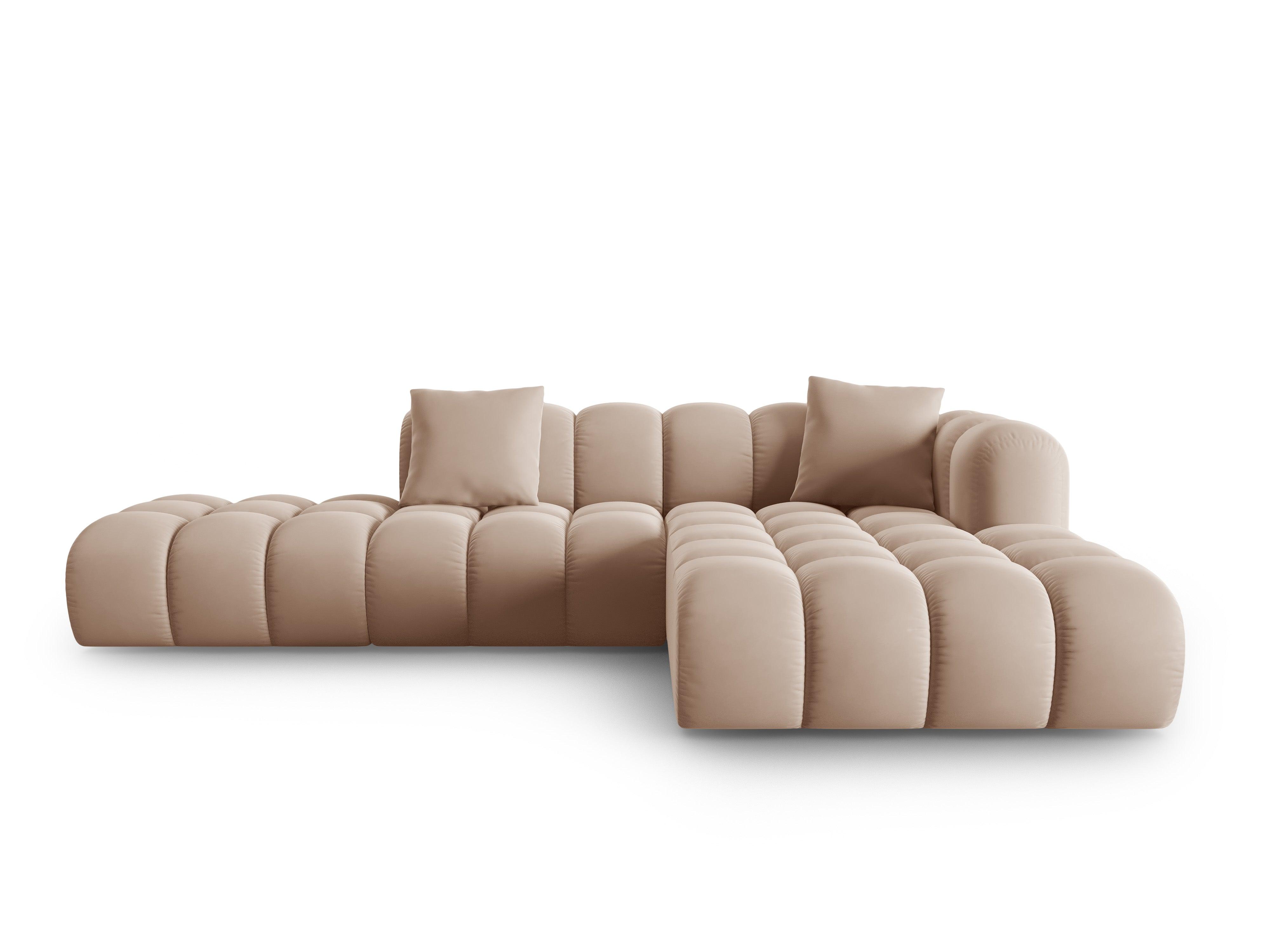 Beige HALLEY rechtse 5-persoons fluwelen hoekbank