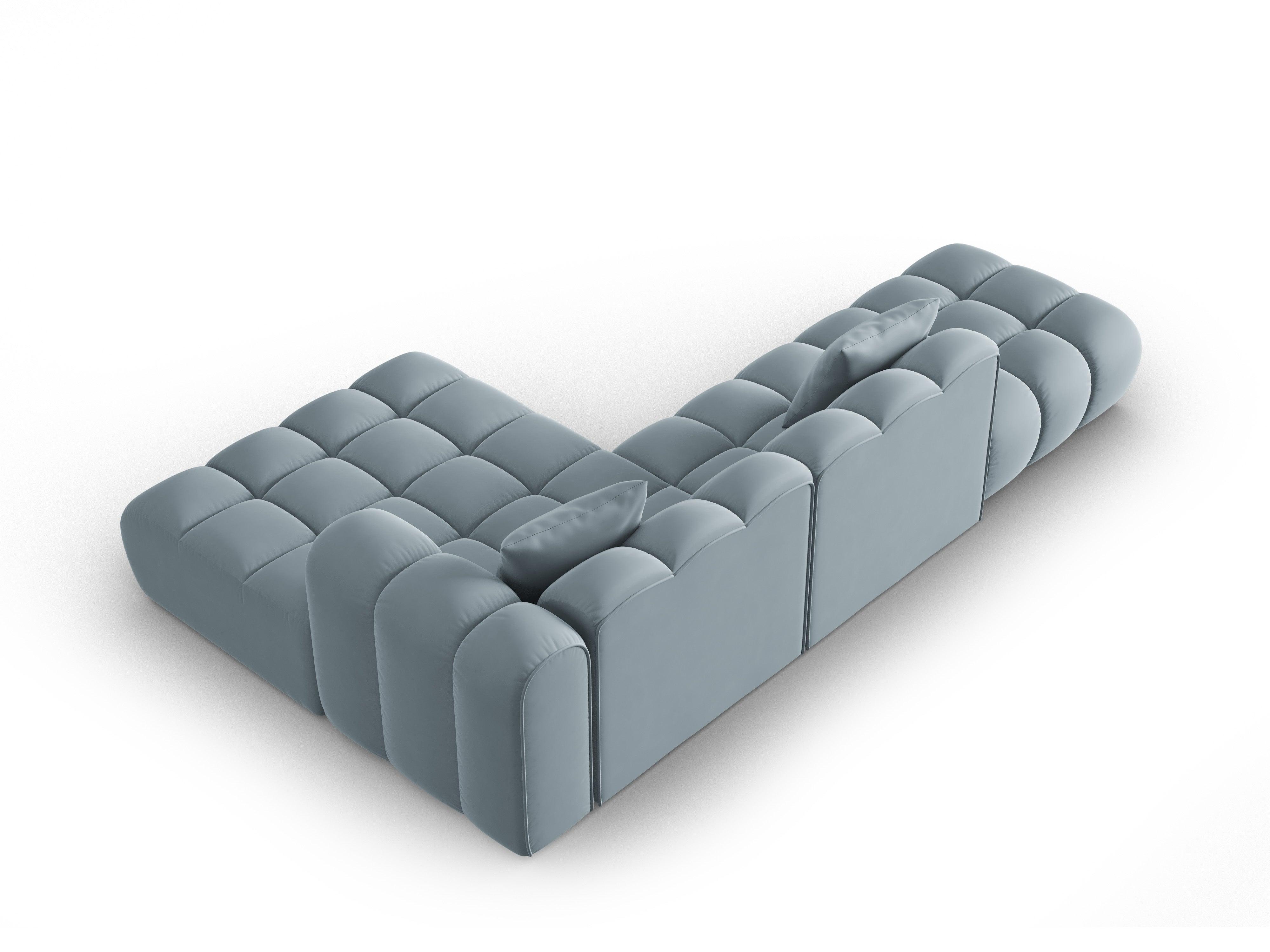 Narożnik aksamitny 5-osobowy prawostronny HALLEY jasnoniebieski
