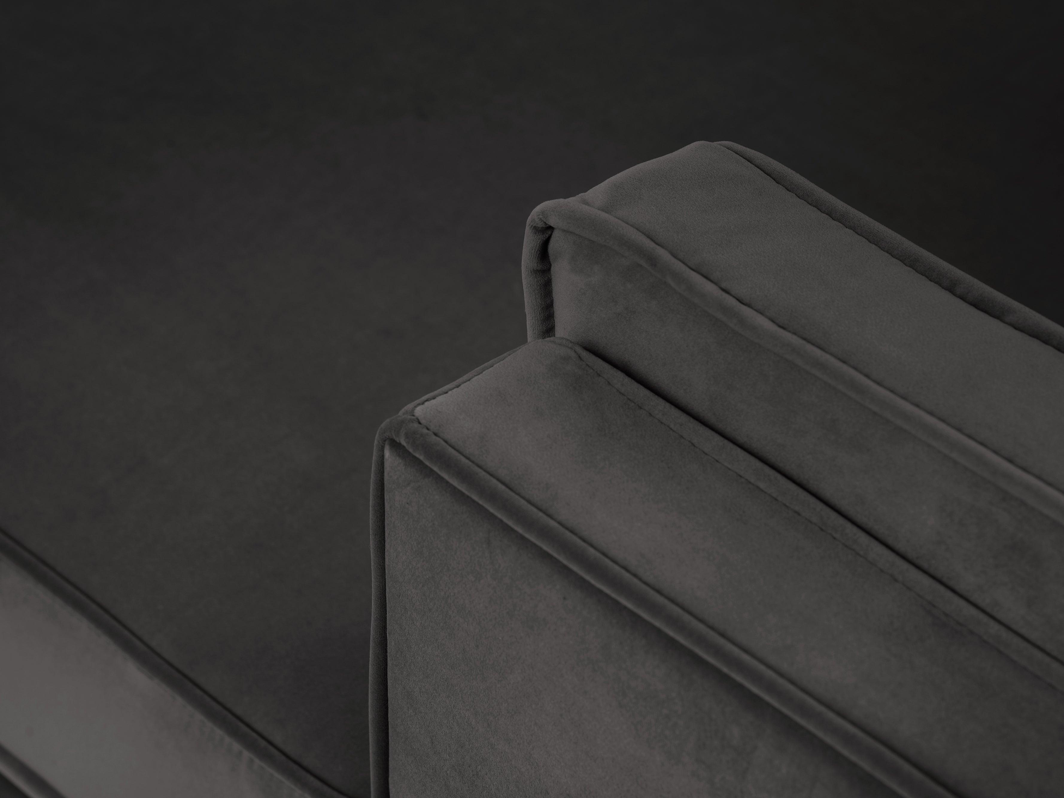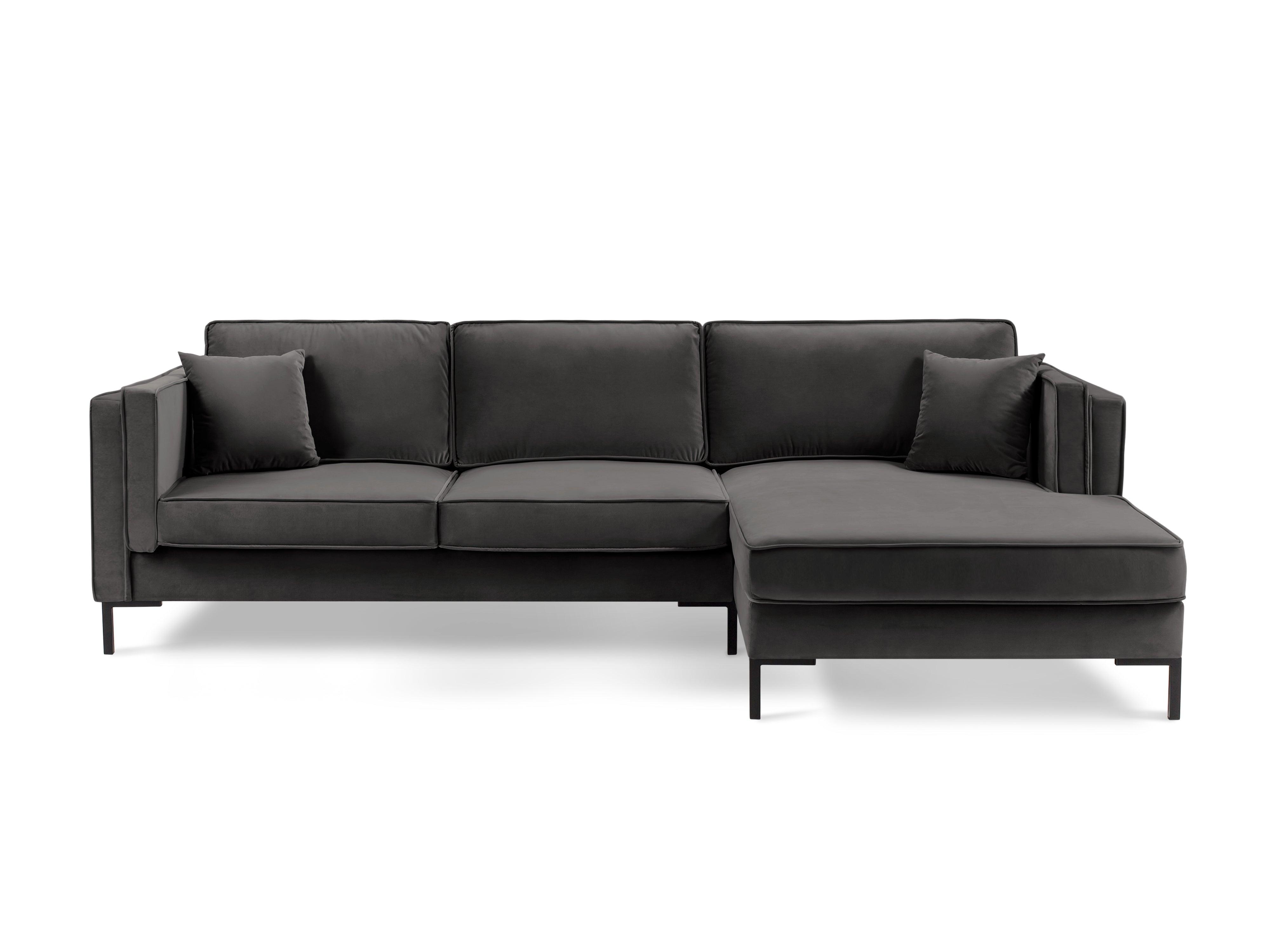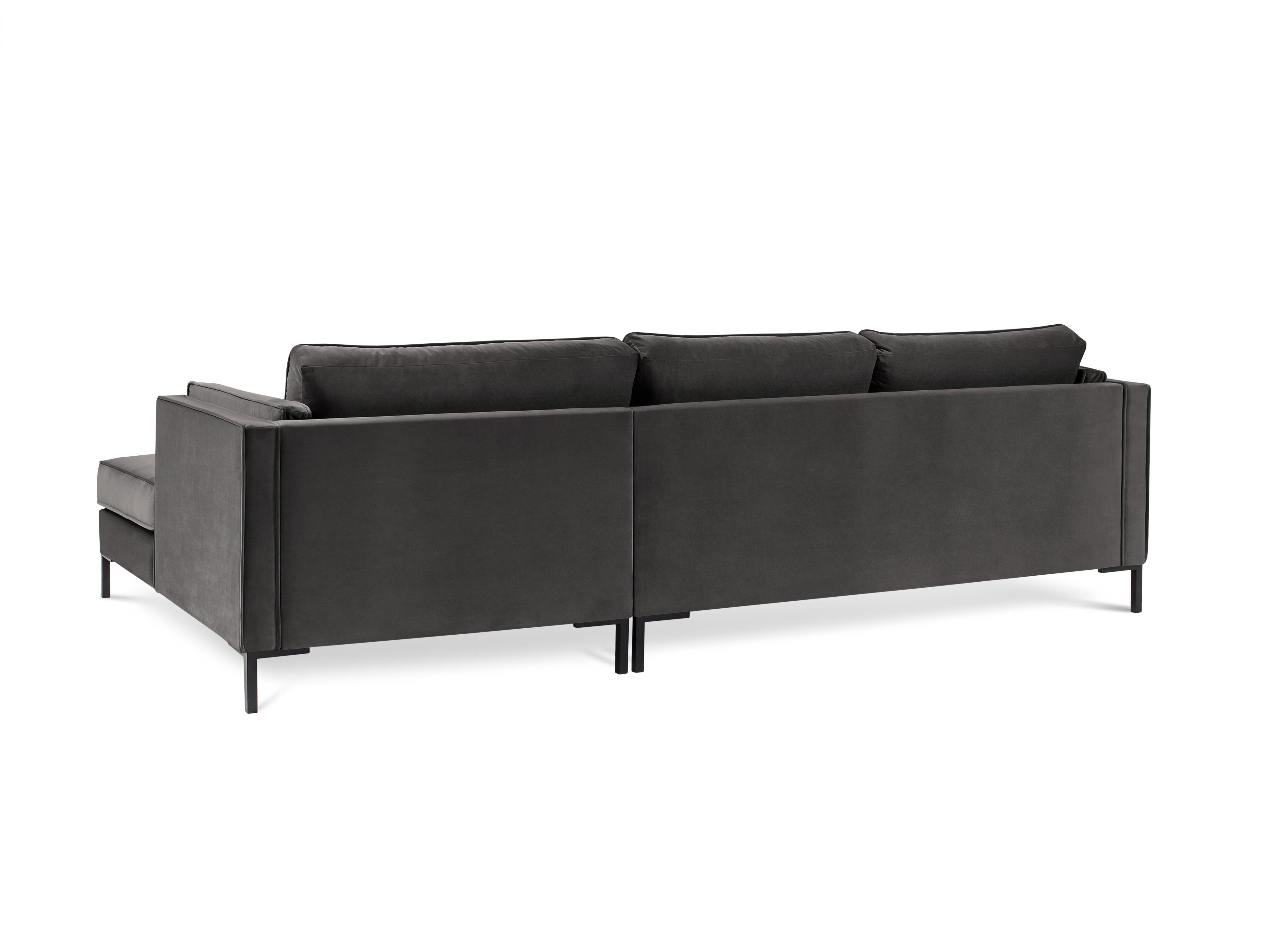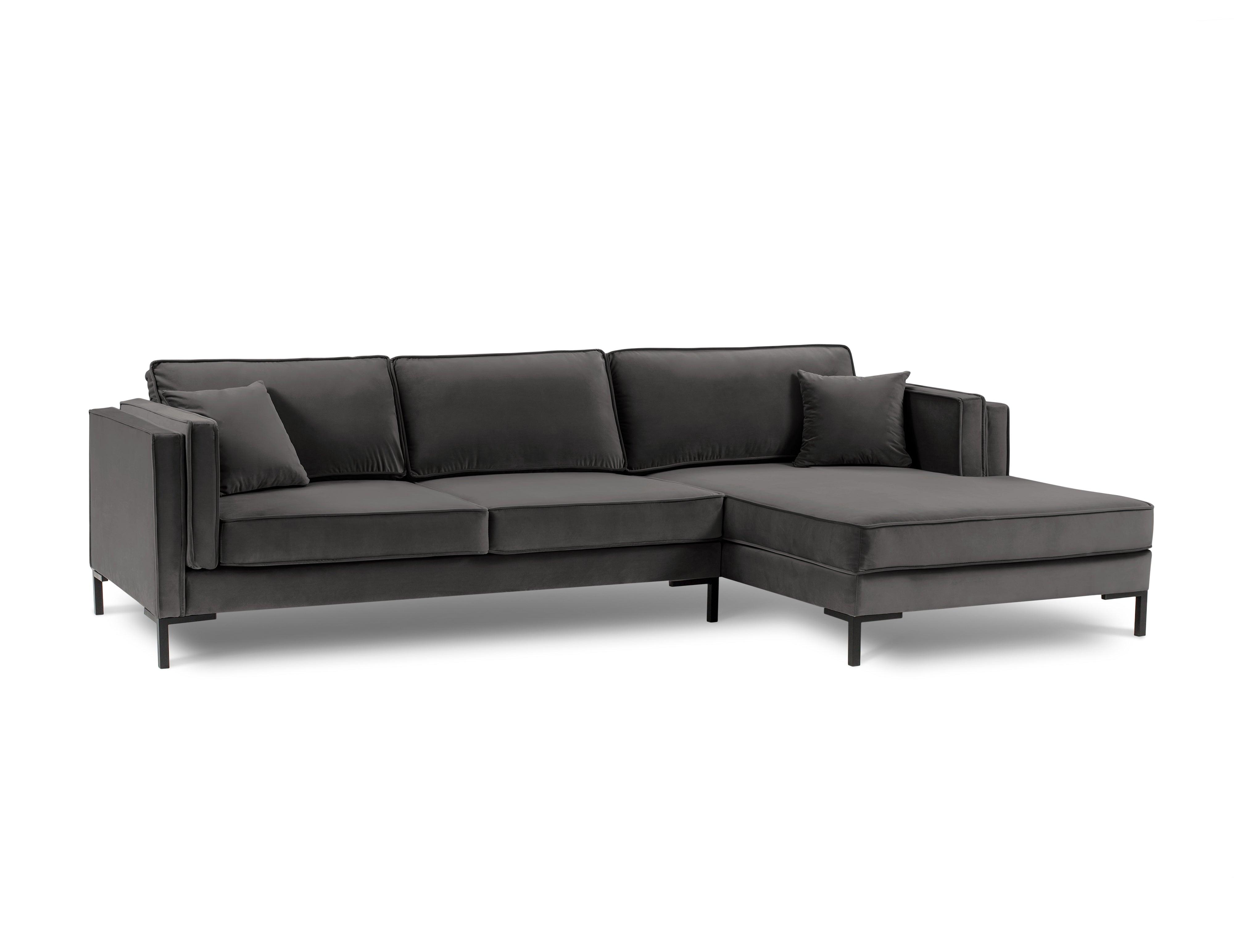 Donkergrijze fluwelen rechtszijdige hoekbank LUIS met zwarte basis