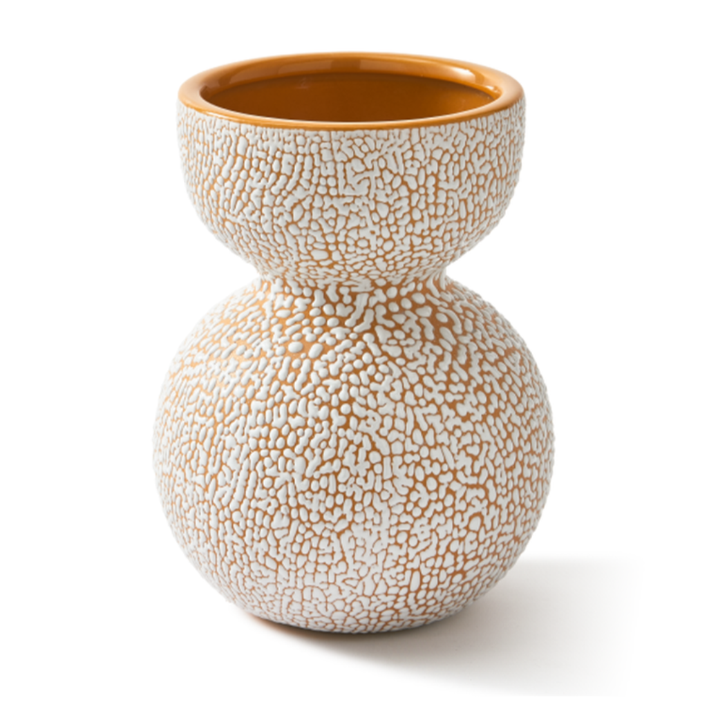 Ontdek vaas Boolb Dots – een ware explosie van stippen en vormen. Elk exemplaar is uniek, omdat er geen twee dezelfde patronen zijn. Het geheim van Boolb ligt in de innovatieve glazuurtechniek “crawling glaze”, waardoor elke stip een driedimensionale diepte en textuur krijgt. Glanzende elementen op een matte achtergrond creëren een opmerkelijke visuele en tactiele indruk, die de aandacht trekt en uitnodigt tot interactie.