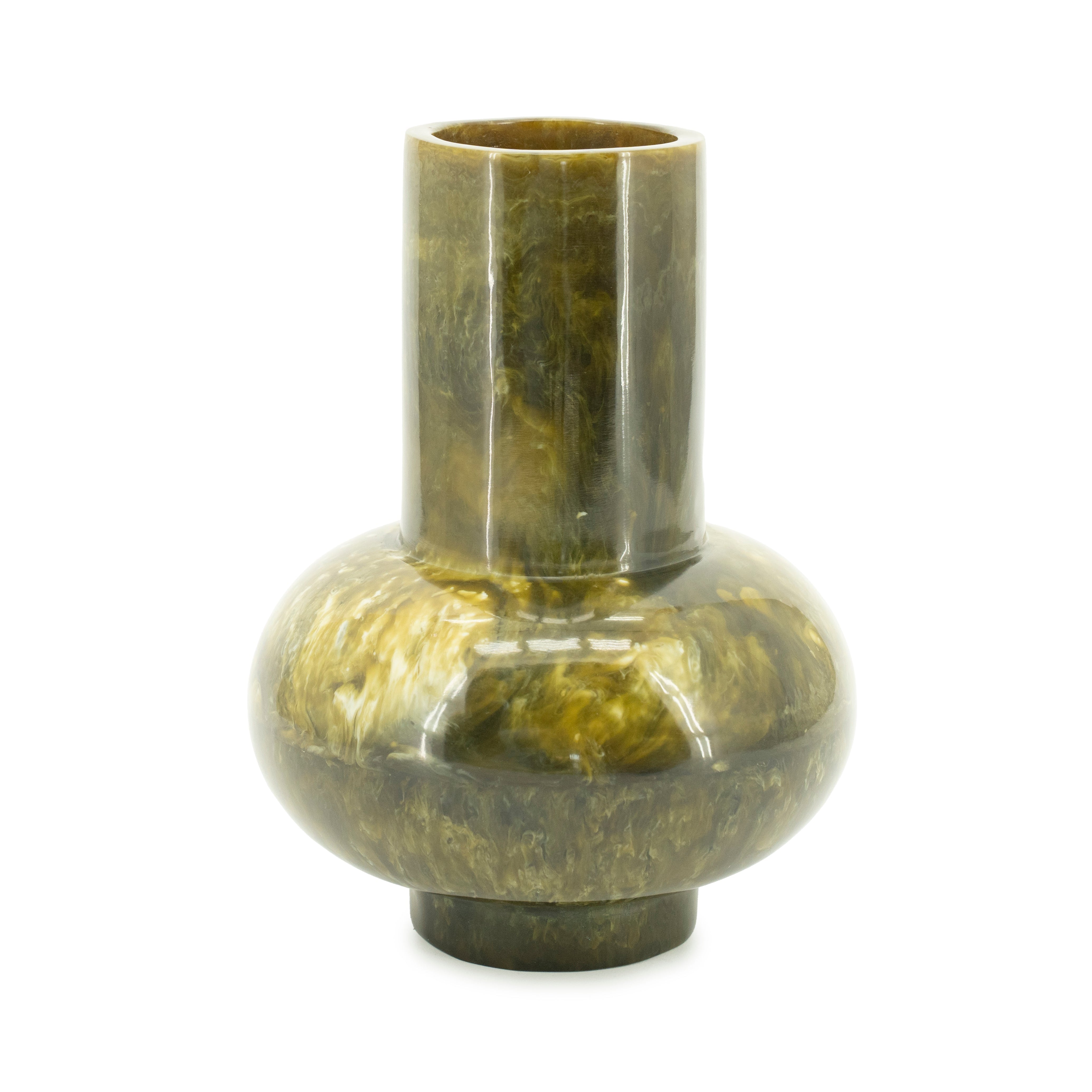 Vaas Yaba is een decoratief accent dat onmiddellijk de aandacht trekt door zijn elegante vorm en afwerking geïnspireerd op natuurlijk marmer. Zijn afgeronde silhouet in combinatie met de cilindrische hals geeft het de uitstraling van een sculpturaal object, dat perfect is als versiering voor een tafel, dressoir of plank – zowel solo als in combinatie met andere vaatwerk. Dit is de ideale keuze voor liefhebbers van natuurlijke texturen en verfijnd design.