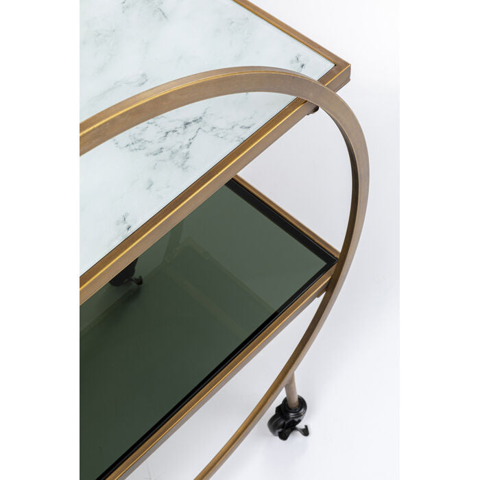 Niezależnie od okazji – Sylwester, wielkanocne śniadanie czy letnia impreza – ten wózek barowy zawsze będzie gotowy dołącz do zabawy. Jego solidna konstrukcja z półkami z hartowanego szkła w stylu marmuru, sprawia, że jest odporny na codzienne użytkowanie. Co więcej, ten wózek barowy jest ręcznie wykonany, co dodaje mu unikalnego charakteru.