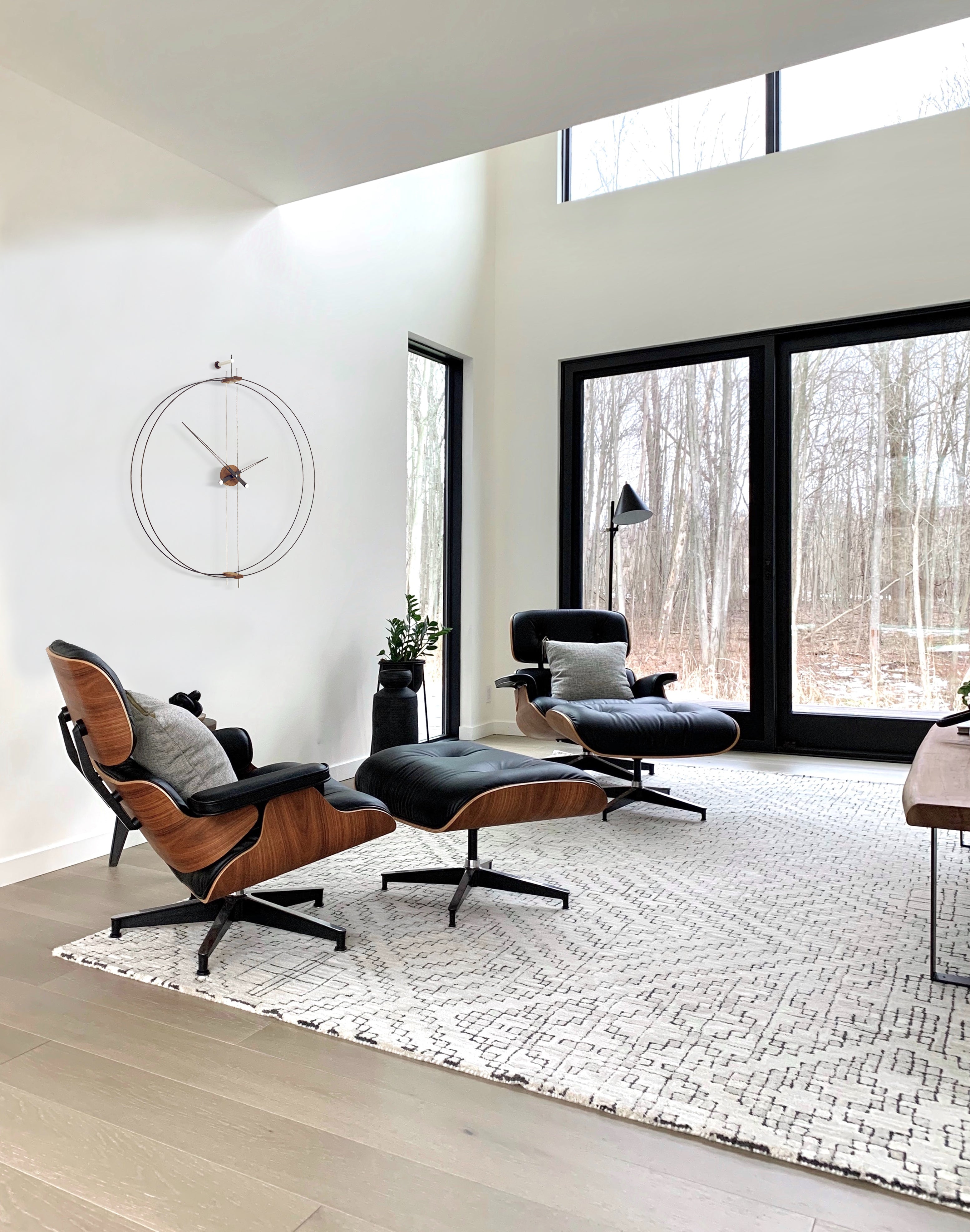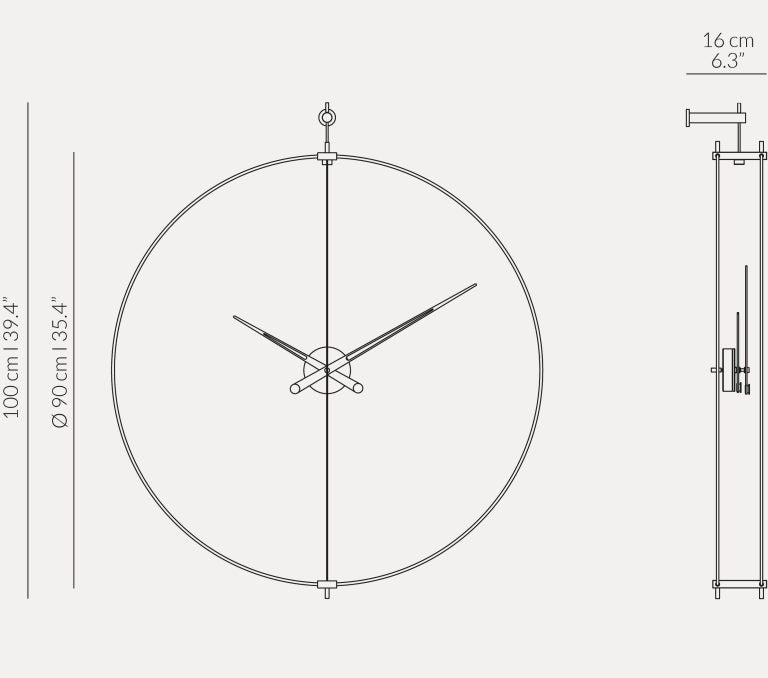 Met de hand afgewerkte elementen van notenhout en zwart gelakte wijzers creëren een harmonieuze samenstelling van materialen. Het precieze Duitse UTS-mechanisme garandeert betrouwbare en stille werking, waardoor deze klok niet alleen een decoratie is, maar ook een functioneel onderdeel van de inrichting. Dit iconische wandklok geeft de ruimte een verfijnde, tijdloze uitstraling.
