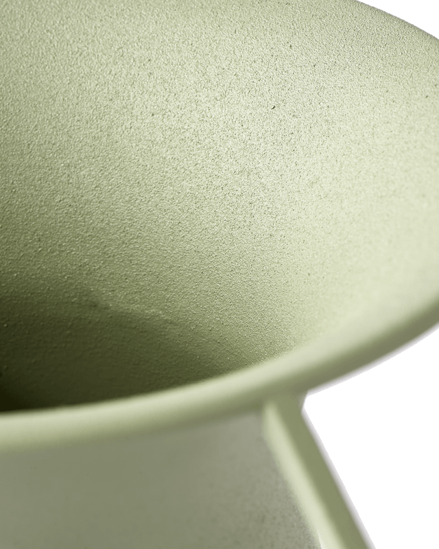 De set van drie vazen is poedergecoat in gedempte moderne tinten en afgewerkt met een unieke textuur. Elke vaas is met de hand gemaakt van stevig ijzer met een verrassend delicate uitstraling.