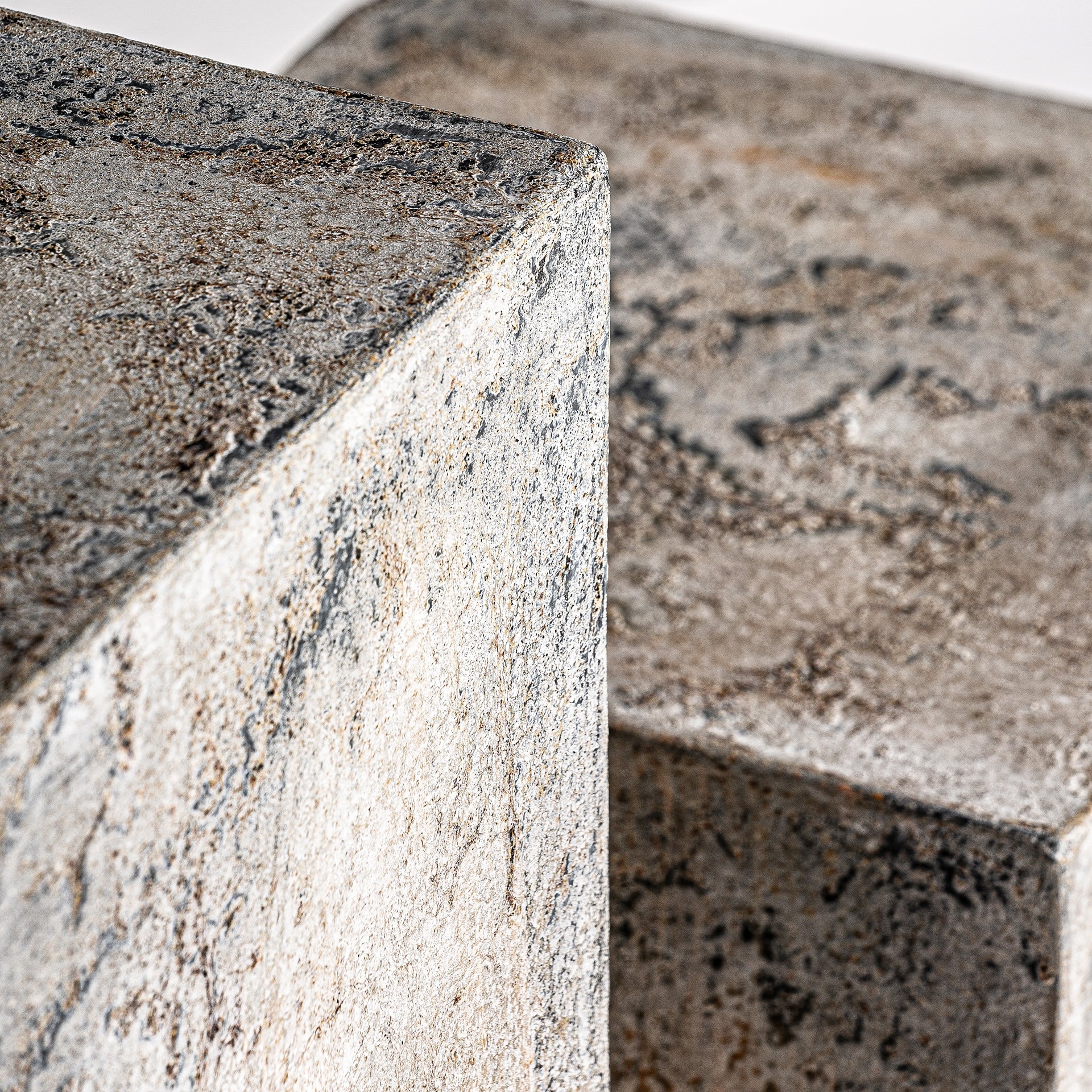 Moderne set bijzettafels Arvit is gemaakt van duurzaam materiaal, wat zorgt voor stabiliteit en langdurigheid. Hun eenvoudige, verticale vorm toont voorwerpen perfect en geeft de ruimte een elegante en opgeruimde uitstraling. Deze elegante set bijzettafels is de ideale keuze voor mensen die originele, enigszins ruwe vormen met een decoratief karakter waarderen.