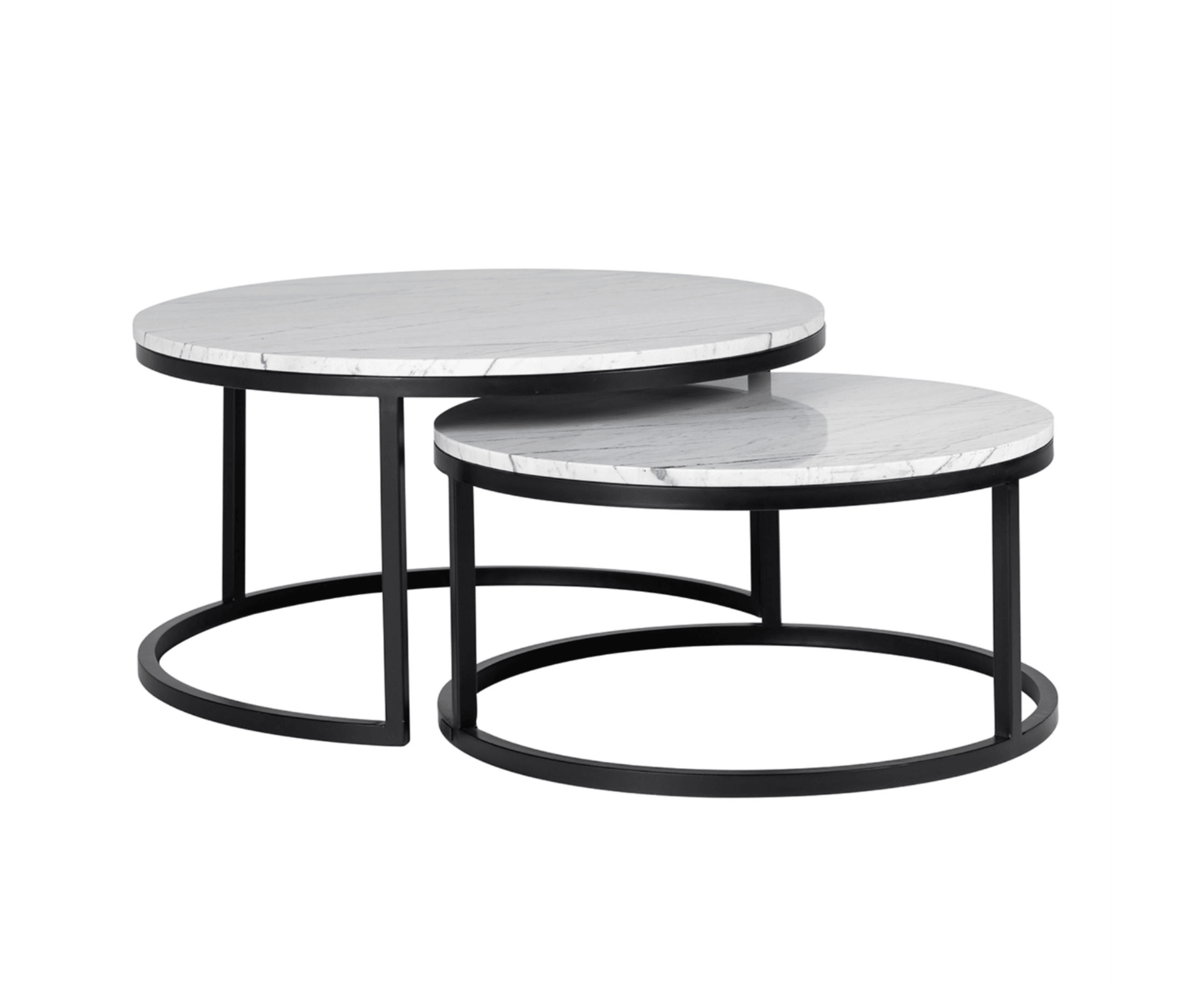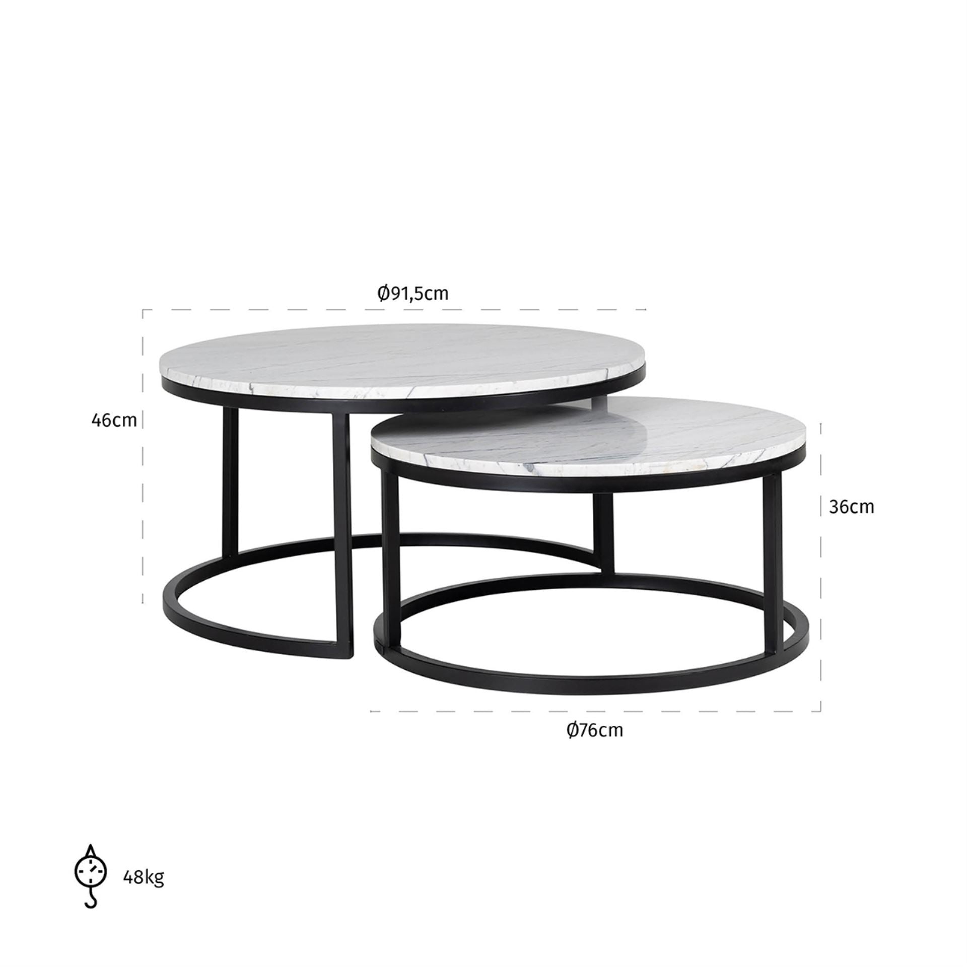 De basis van de tafels biedt niet alleen functionele ondersteuning, maar is ook een decoratief element. De zwarte kleur van de basis geeft de tafels een vleugje klassiekheid en veelzijdigheid. Deze kleur harmoniseert perfect met het witte marmeren blad, waardoor er een contrast ontstaat dat de aandacht trekt en het interieur karakter geeft.