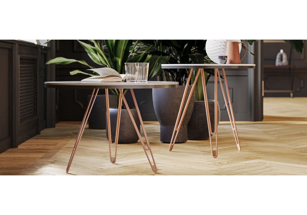 Salontafels en koffietafels Linear Shore met een glazen blad en digitale print met een contrasterend materiaaleffect zijn uitstekende aanvullingen voor elegante interieurs. Ze combineren de wereld van mode en design dankzij een unieke voet die verwijst naar een sleutelelement van het ontwerp - de speld.