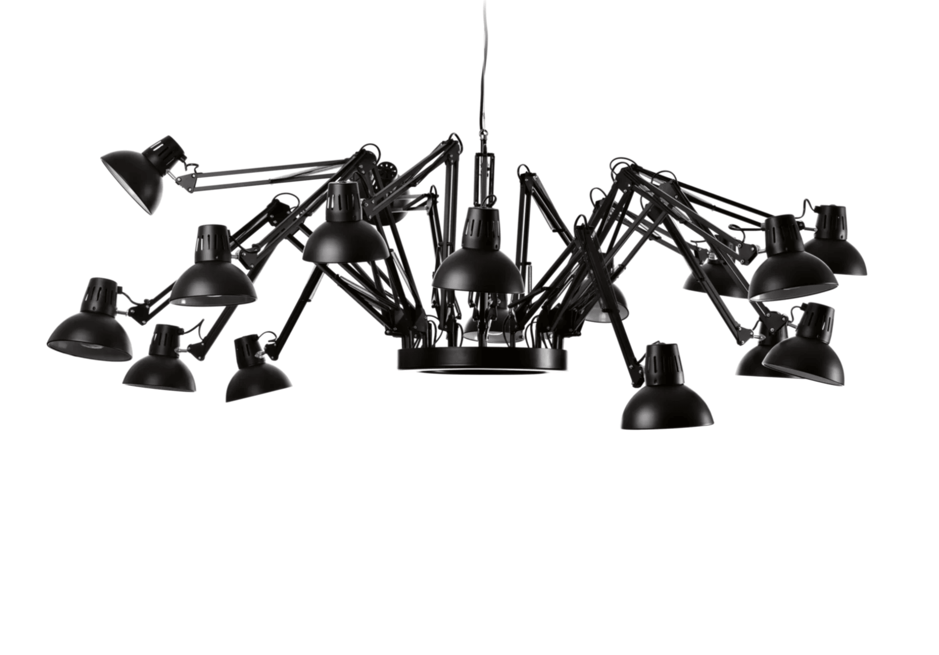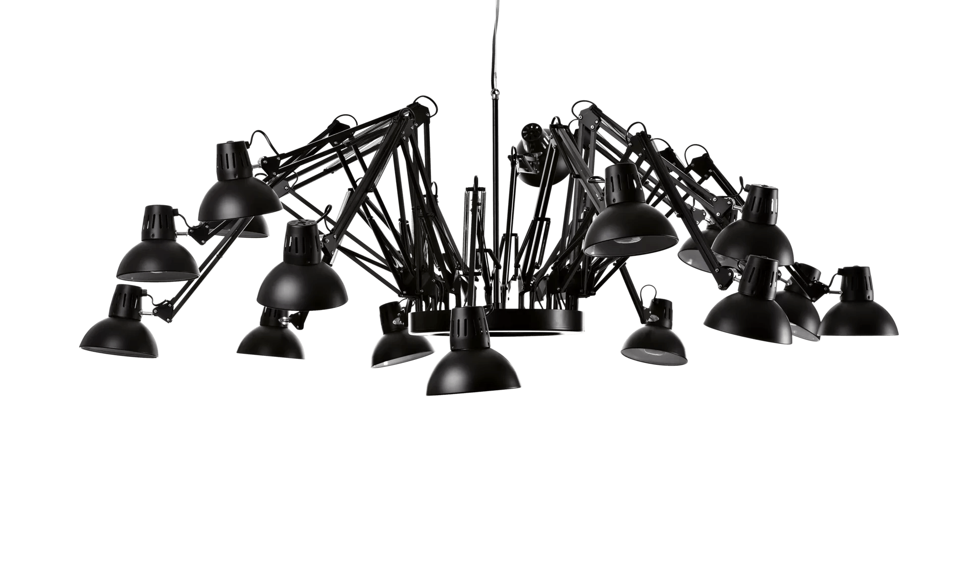 De constructie van Dear Ingo doet denken aan een spinnenweb, bestaande uit 16 lampen, waarvan elke lamp een eigen, verstelbare arm heeft. Dit maakt het mogelijk om de richting en intensiteit van het licht vrij aan te passen, zodat elke hoek van de ruimte verlicht kan worden. Deze kroonluchter is niet alleen een praktisch lichtbron, maar ook een opvallend decoratief element dat karakter en plezier aan elk interieur toevoegt.