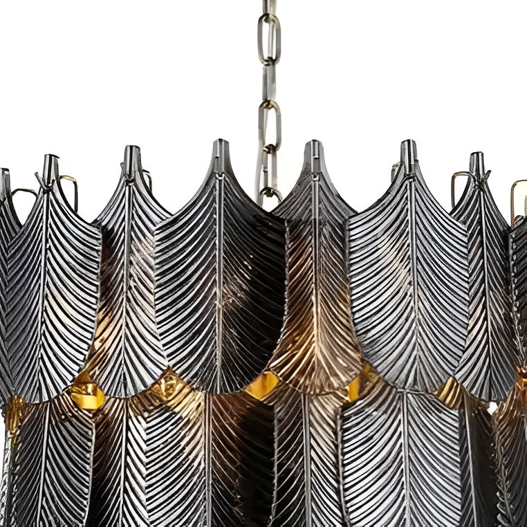 Stylowy żyrandol Divine w kolorze czarnym to unikatowe oświetlenie, które przyciąga wzrok nietuzinkowym designem inspirowanym naturą. Elementy w formie liści tworzą efektowną kaskadę, która nadaje wnętrzu charakteru i elegancji. To idealna propozycja dla osób ceniących odważne dekoracje oraz designerskie dodatki, które staną się centralnym punktem aranżacji w salonie, jadalni czy holu.