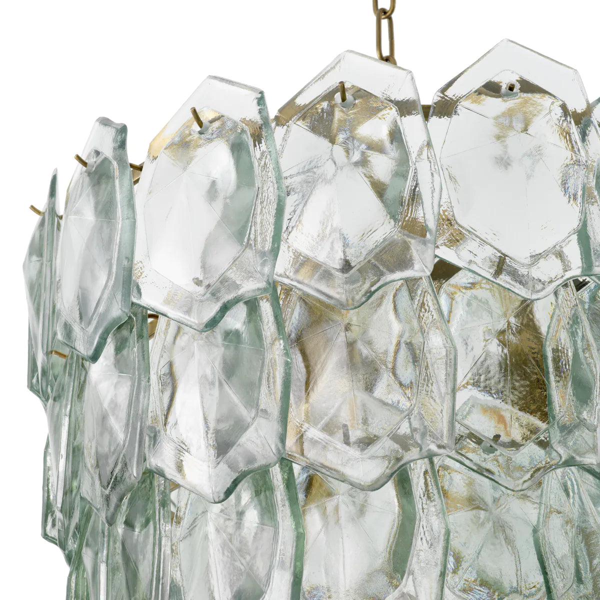 Kroonluchter Elias is de essentie van retro stijl geïnspireerd door de jaren '50, in een elegante en tijdloze uitvoering. Hangend aan een lange ketting, is de kroonluchter uitgevoerd in een afwerking in de kleur van oud messing en versierd met meer dan 60 handgemaakte glazen elementen, die een unieke spel van licht en structuur creëren. Elk glazen detail is zorgvuldig vervaardigd door ambachtslieden, wat dit model tot een waar kunstwerk maakt.