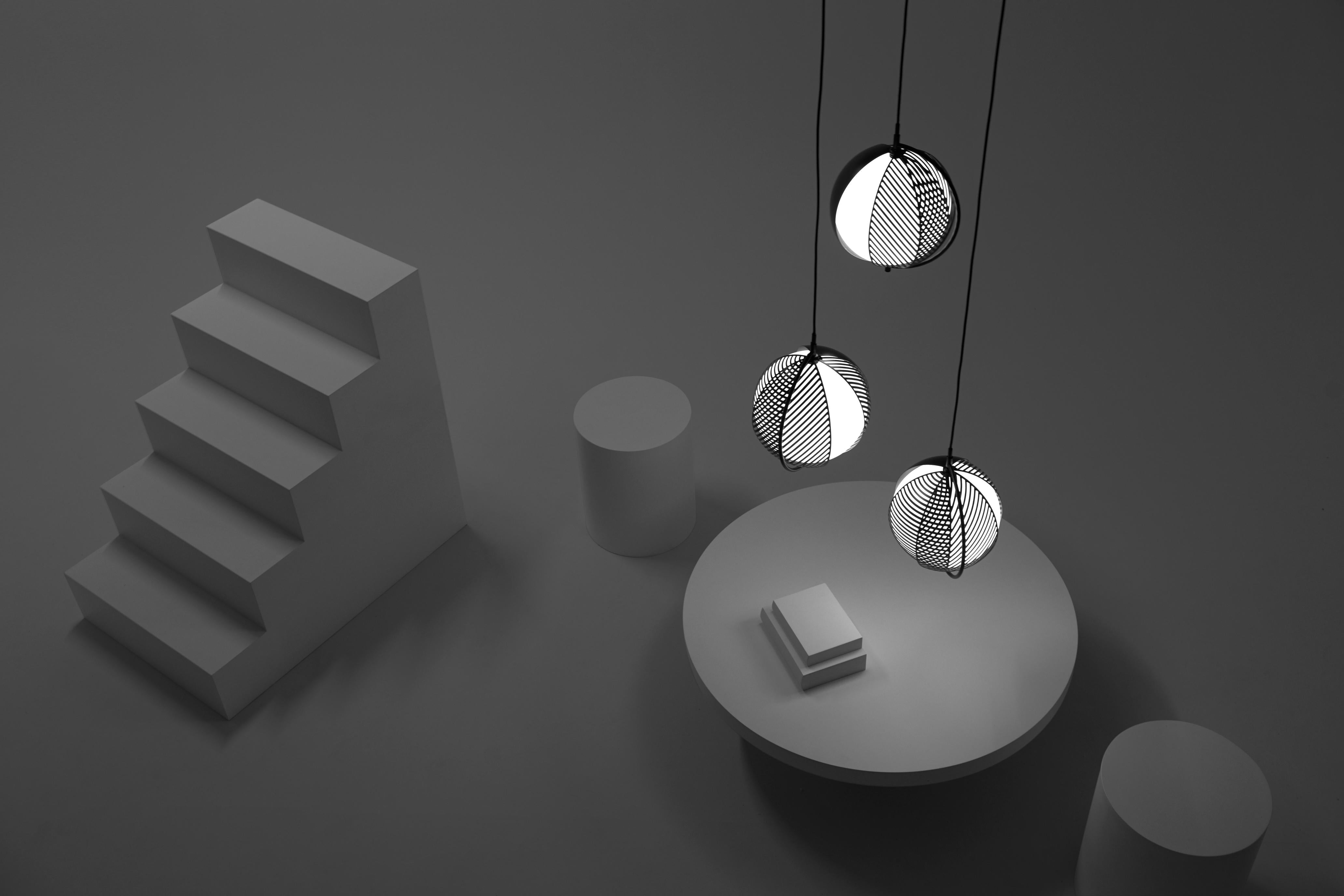 Kroonluchter Mondo Triplette is een moderne interpretatie van een klassieke verlichtingsvorm. Bestaat uit drie verbonden kappen, deze designkroonluchter combineert artistiek karakter met functionaliteit. Beweegbare metalen elementen met een geometrisch patroon stellen gebruikers in staat om het lichteffect te regelen, zodat zij de sfeer van het interieur naar wens kunnen vormgeven. Het ontwerp van Antonio Facco is een samensmelting van elegantie, precisie en creatieve vrijheid – de kroonluchter Mondo Triplette wordt het middelpunt van elke inrichting.