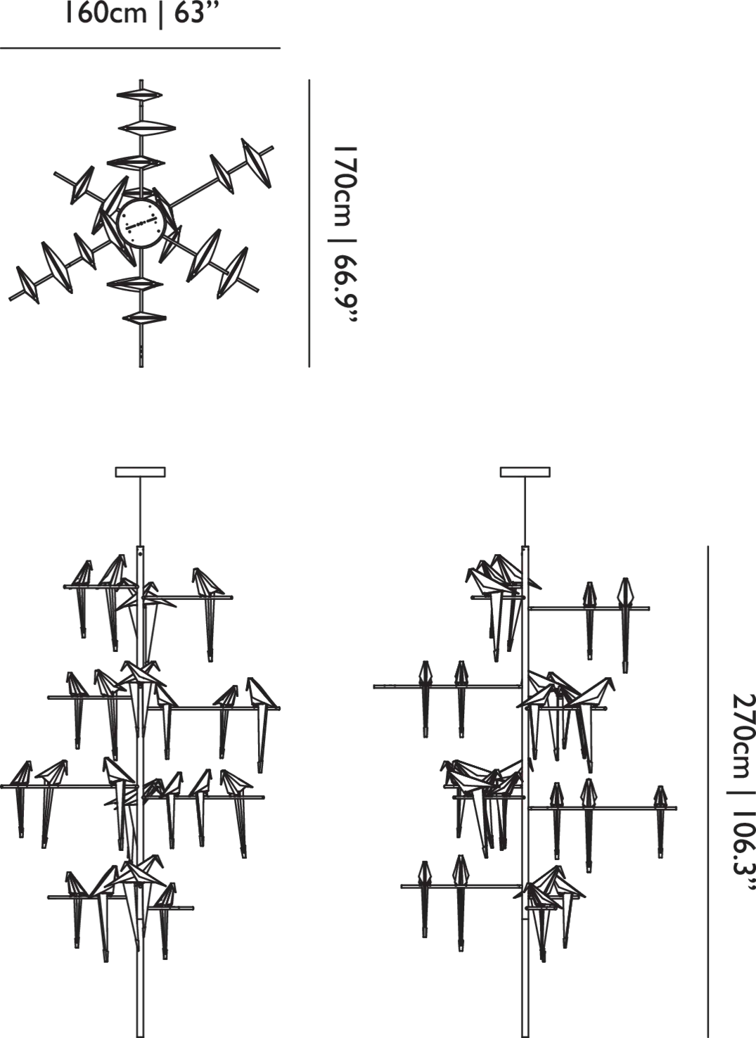 Kroonluchter PERCH TREE staal